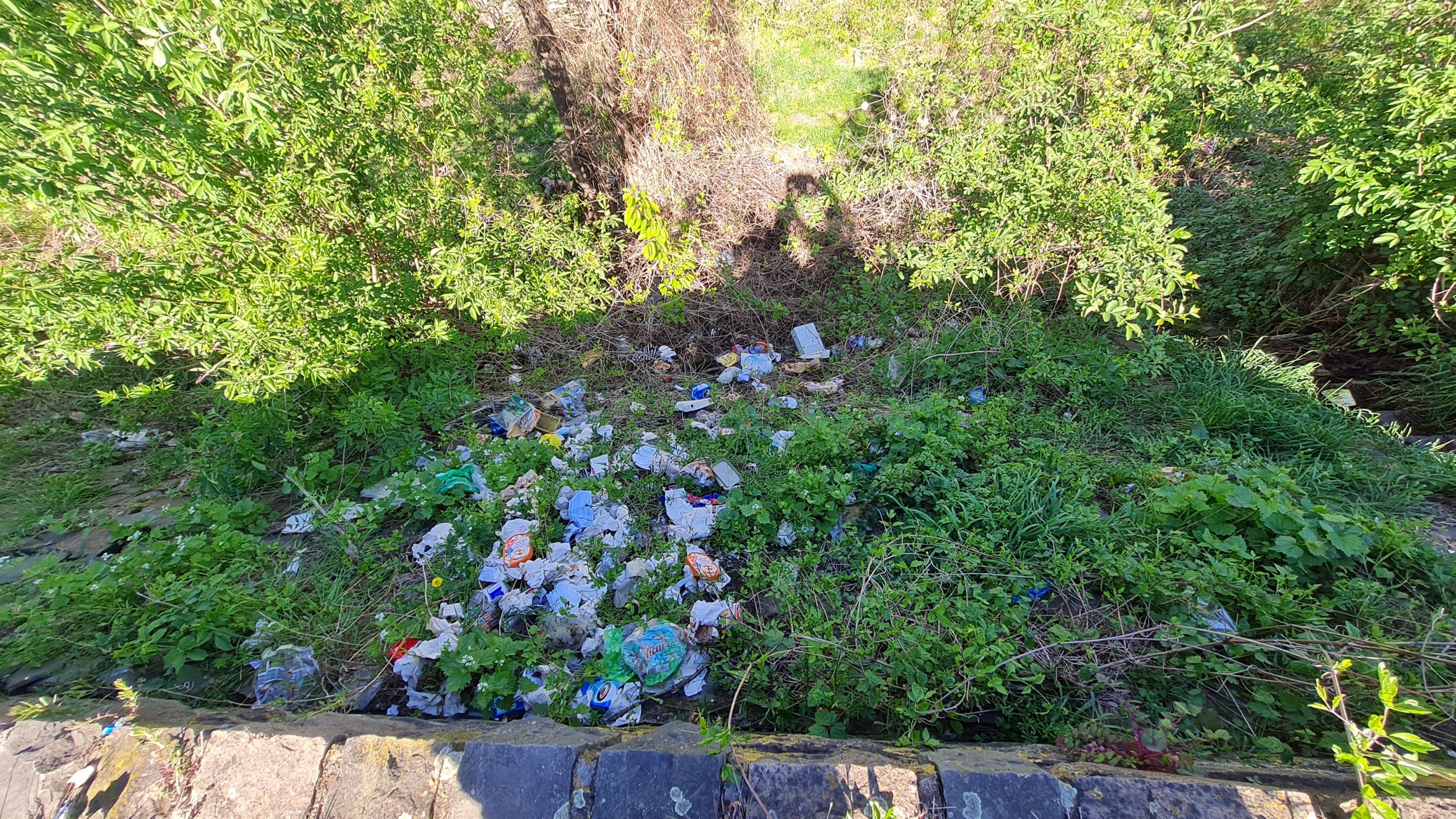 Hinter der niedrigen Mauer auch ein schöner Blick auf die Hinterlassenschaften der Zivilisation.