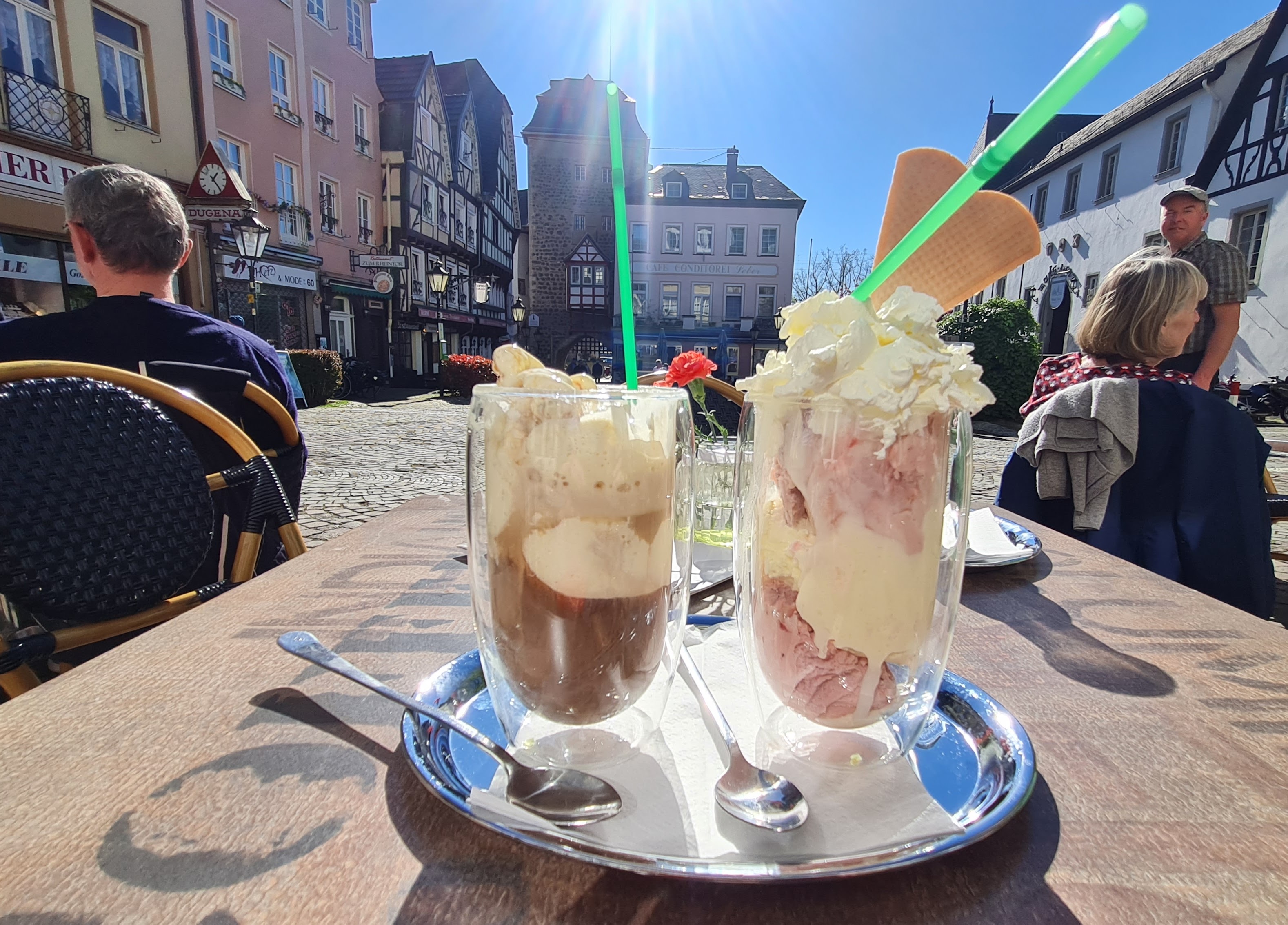 Mit Eispause. Natürlich Erdbeerbecher bestellt. Es kam auch einer: