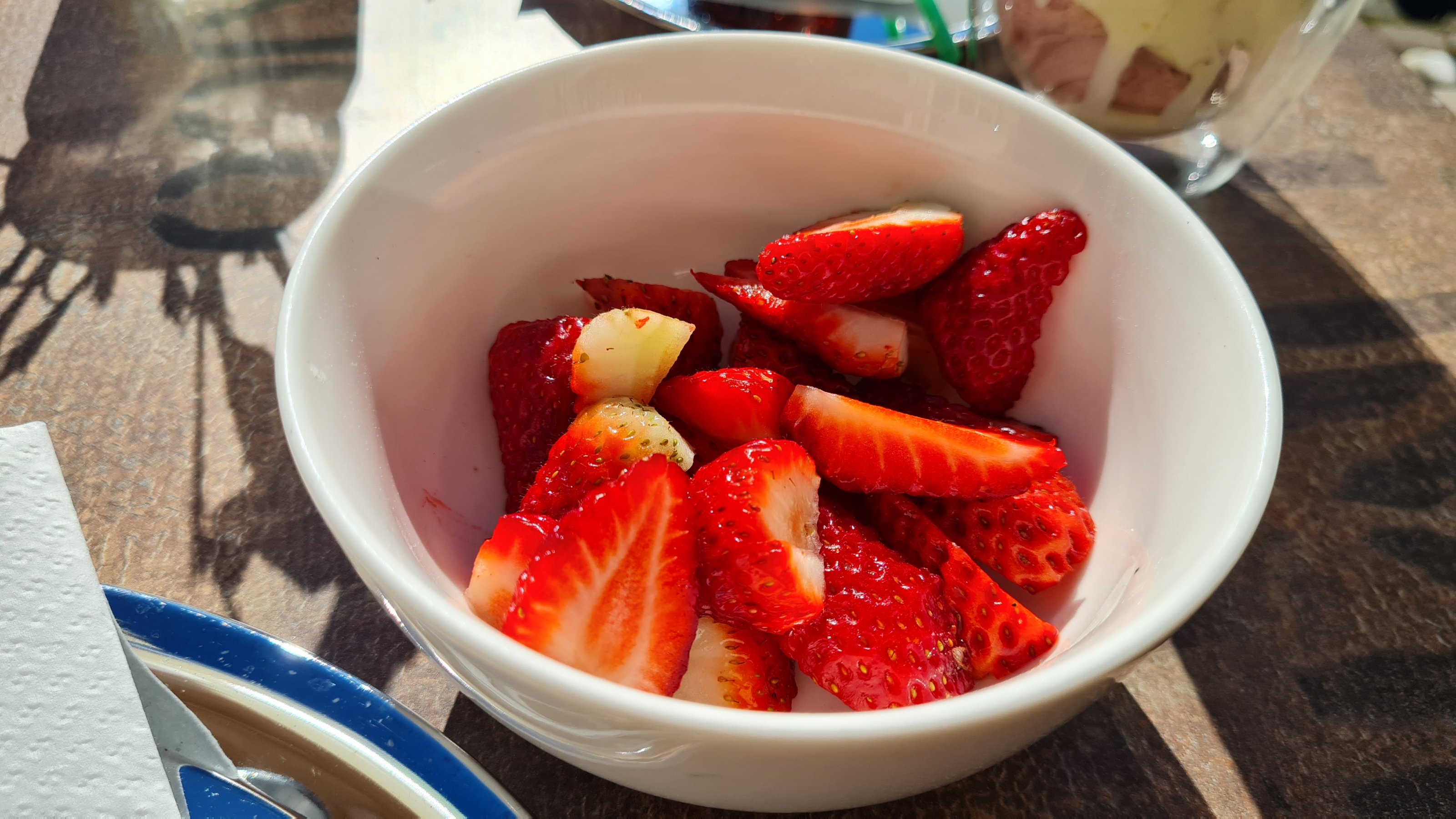 Dezent nachgefragt wo denn die Erdbeeren im Erdbeerbecher seien - wir hätten doch extra danach gefragt. Die Bedienung meinte, dass ja einer wäre - mit Erdbeereis...