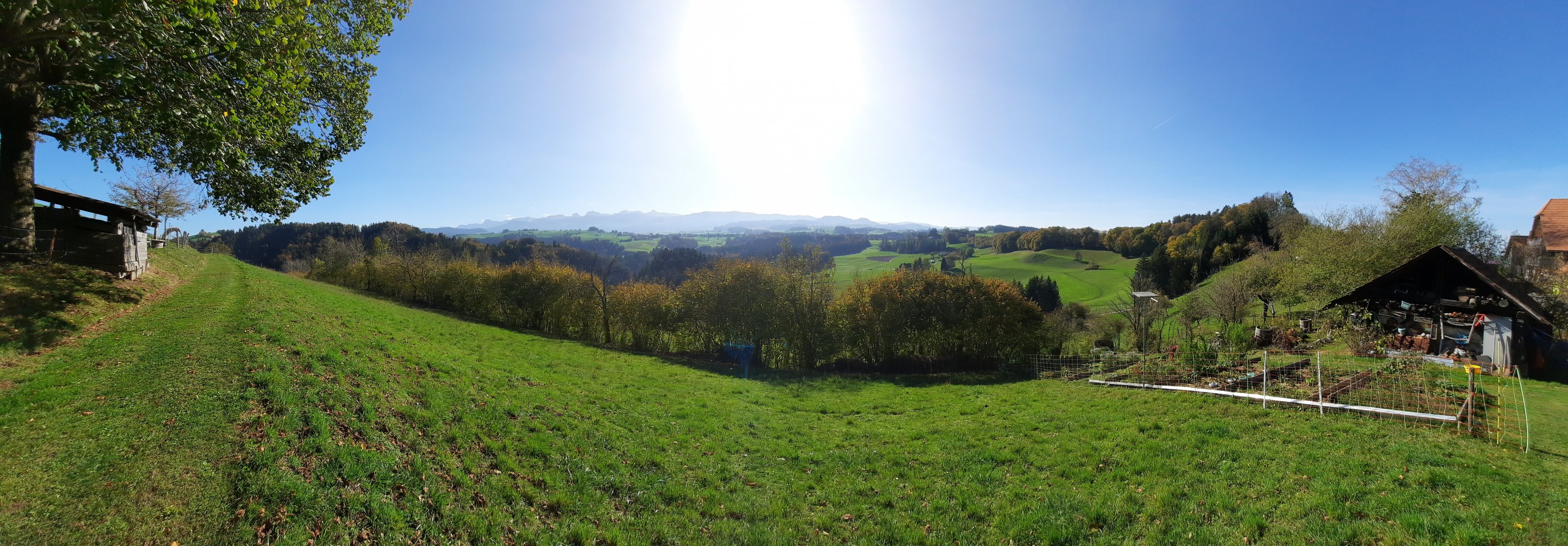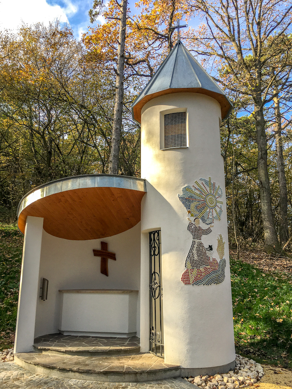 Bin zur Zeit leider etwas verschnupft, daher bei herrlichem Herbstwetter die neue Franz Assisi Kapelle per pedes bei uns am Buschberg besucht.
