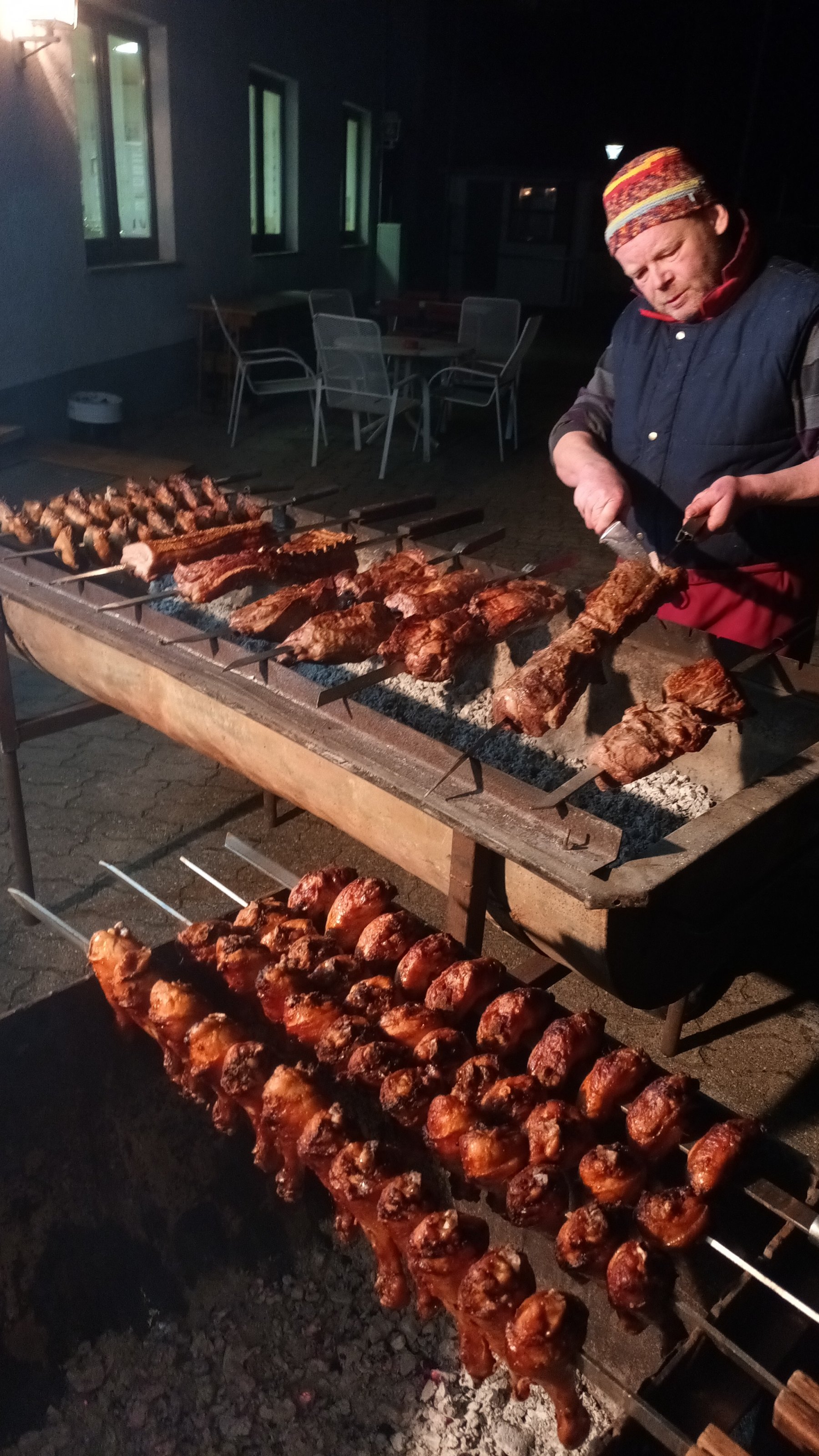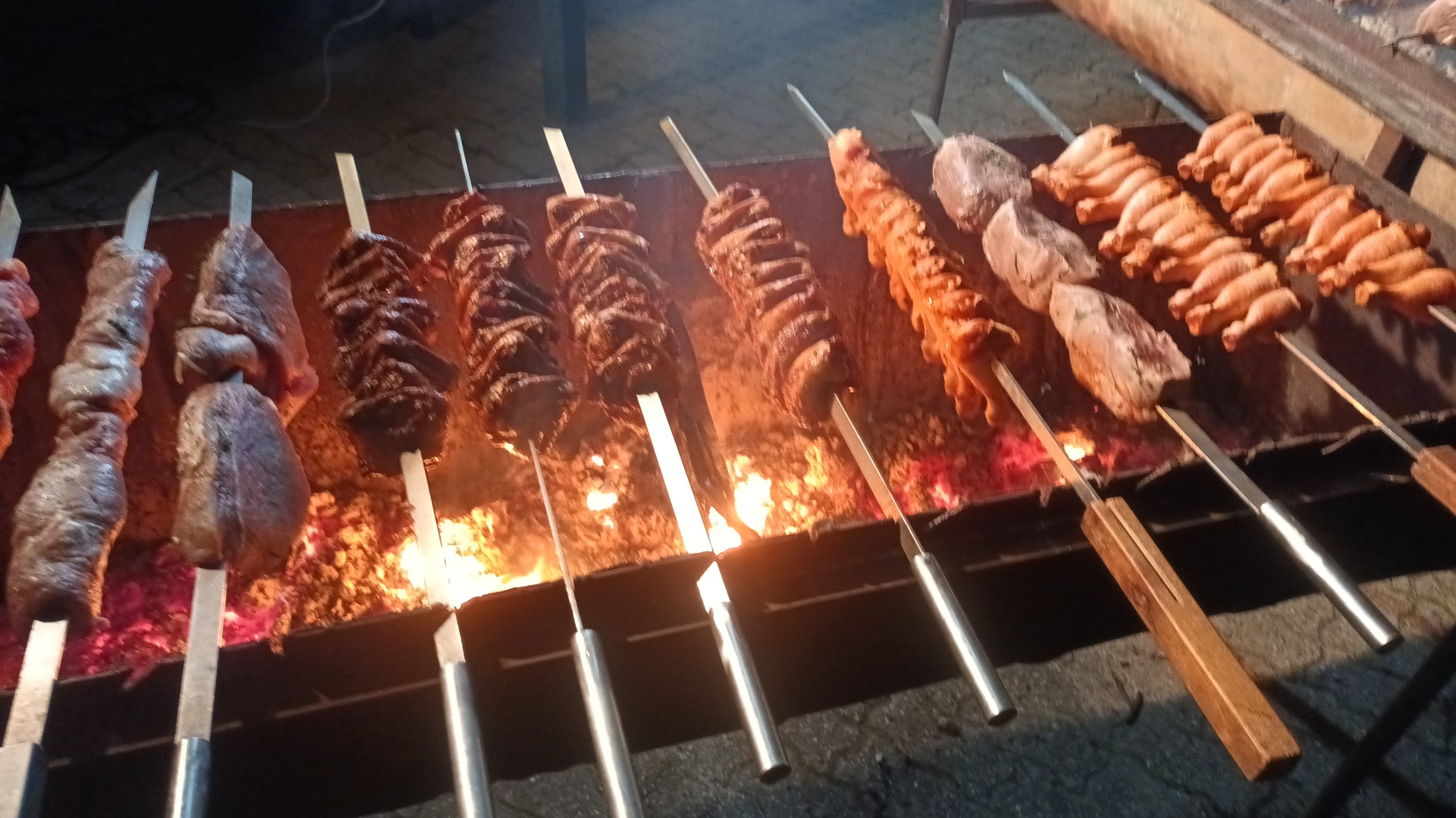 Fleisch wird nur gepökelt und dann gemütlich bei einem Cachaca gedreht und beobachtet und gedreht...und dann mit einem scharfen Messer in Portionen runtergeschnitten ! Einfach, aber ein Genuss!