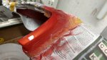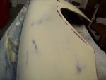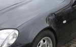 So genau darf man bei meinen Arbeiten nicht schauen. Ohne Lackierkabine kannst Du Staubeinschlüsse nicht vermeiden. Der Kotflügel vom R170 ist zuerst ein Wasserbasis - Metalliclack, der dann mit einem 2K-Klarlack überzogen und geschützt wird, für K1300GT braucht man drei Lacke, ist ein candy-Lack.