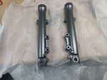 Der Rahmen ist schon gekürzt, umgeschweißt und gepulvert, der Motor glasperlgestrahlt, der kommt jetzt zu mir und wird überholt.
