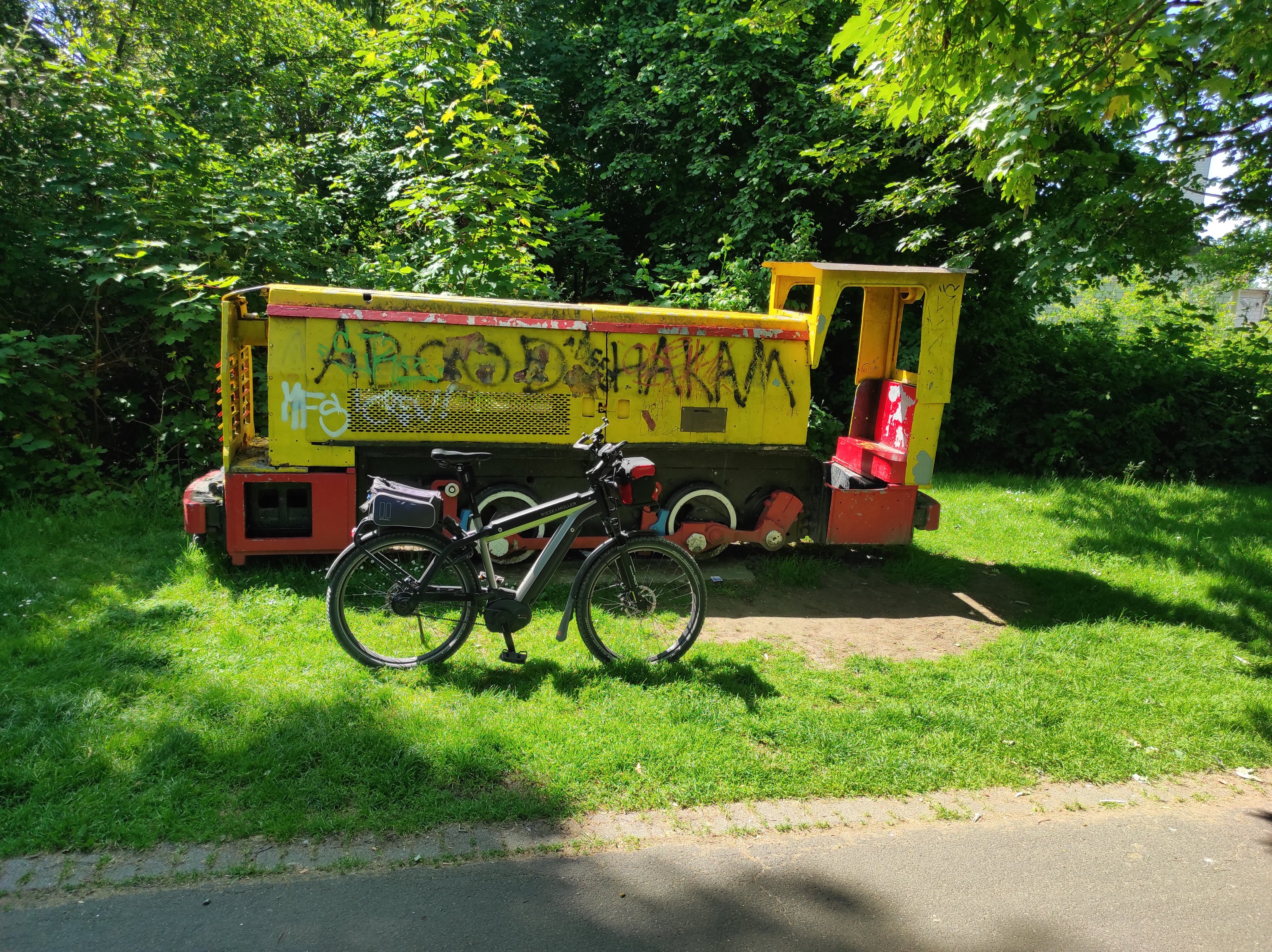 Auf der Gneisenau-Trasse. Die Grubenlok ist schon etwas länger in Rente.
