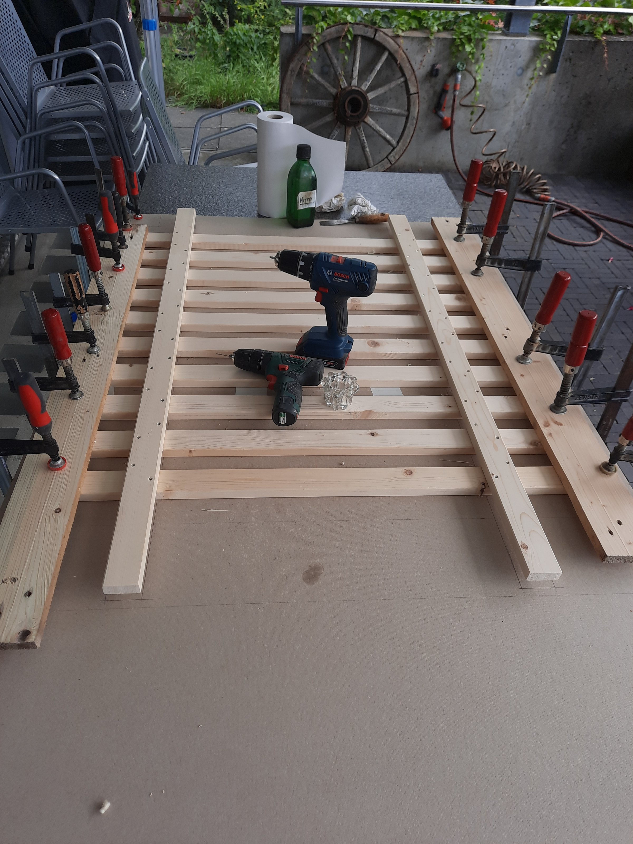 Die Balkonabschrankung nimmt langsam Form an, ich glaub, ich brauch bald Ferien.