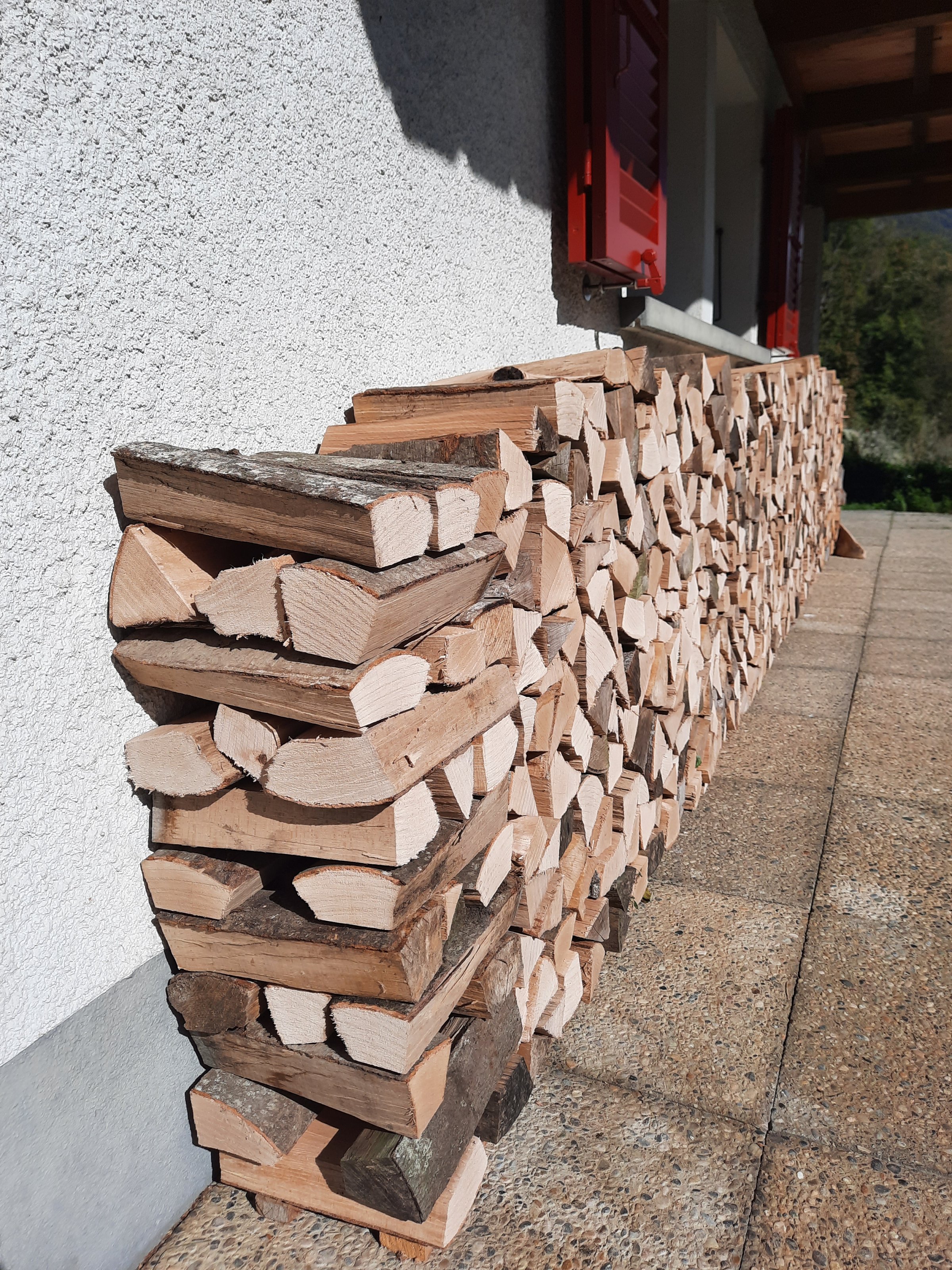 Alles vom Parkplatz ums Haus herum, und einen Stock tiefer getragen.