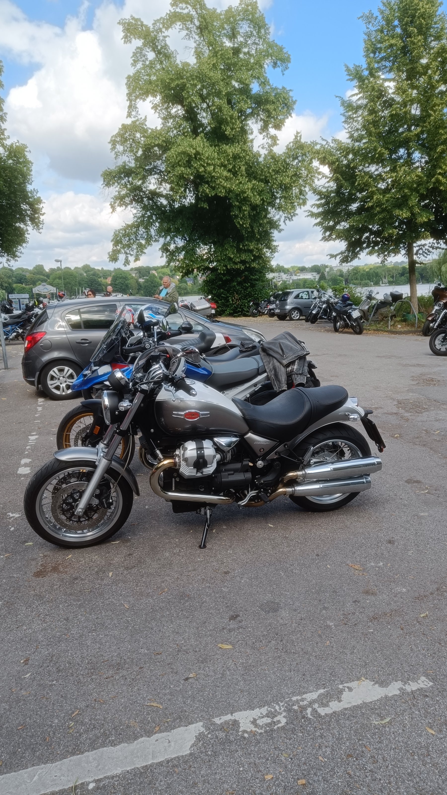 Heute morgen endlich einen Termin bei der Zulassungsstelle gehabt und die ersten 100km zum Haus Scheppen mit dem neuen Bike gedreht. Ich muss schon sagen so eine Guzzi macht es einem nicht gerade leicht direkt eine flüssige Linie zu fahren, wir müssen uns erstmal an einander gewöhnen. Kaum vorstellen wie das auf einer alten Guzzi gewesen sein muss. Aber ich bin Happy 😊
