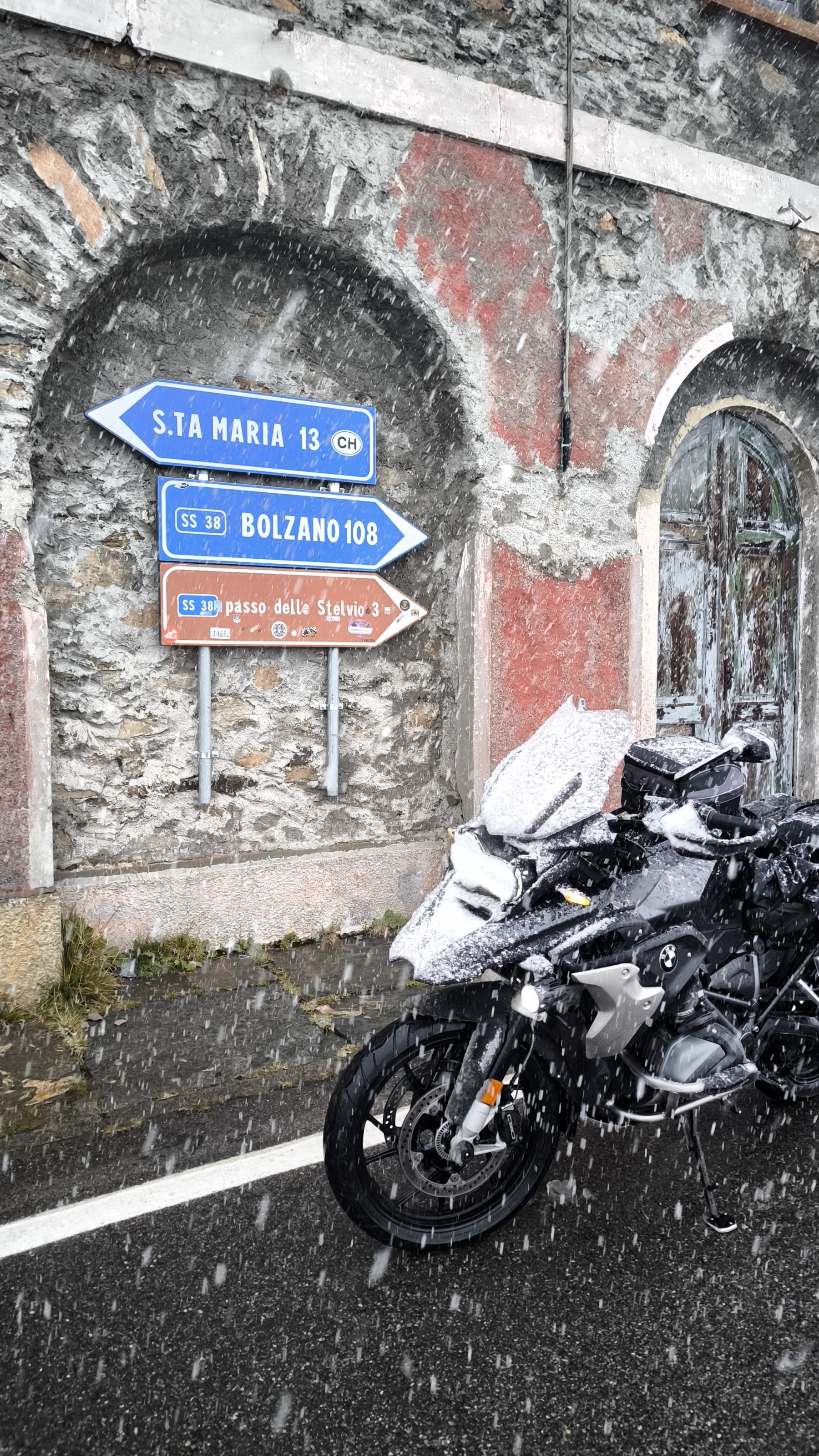 Aber dann gings los am Stelvio, erst Regen, dann Hagel und im letzten Drittel hats geschneit. Oben lagen 3-4cm Schnee auf der Straße. Zum Glück haben die Autos ne Spur gezogen....
