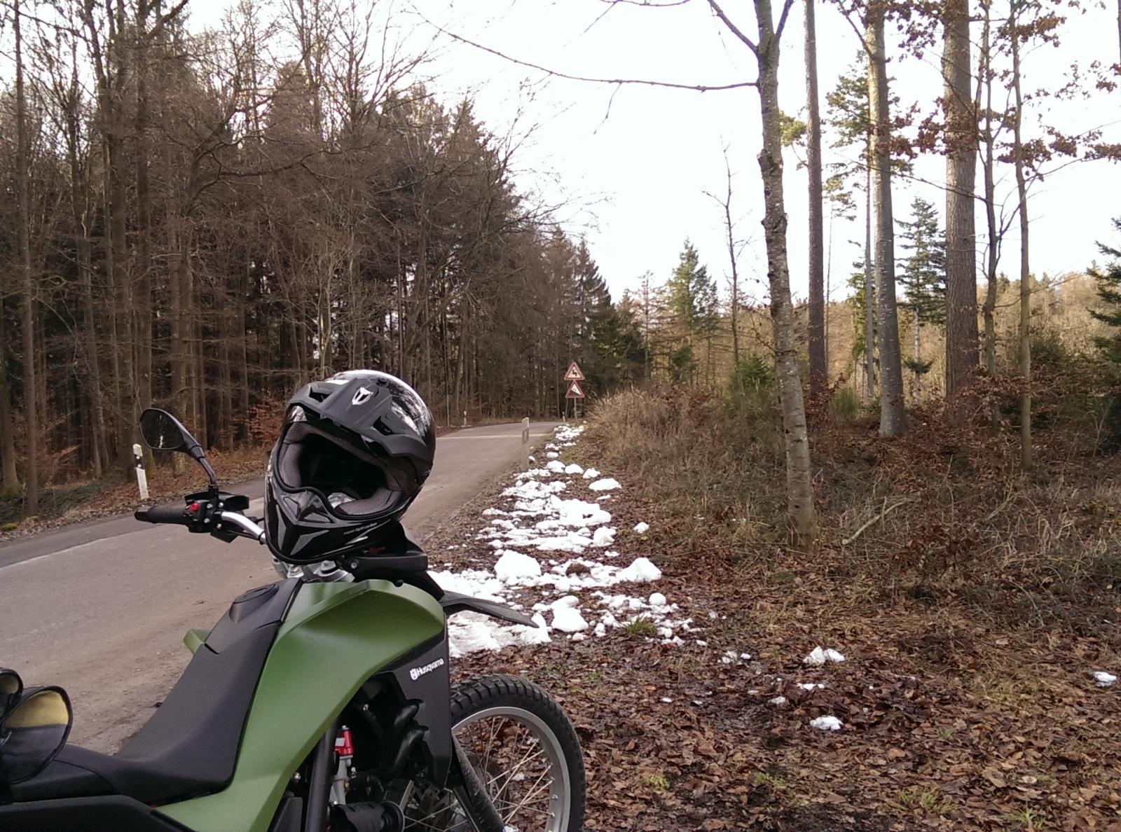 Es war noch eine Lady mit einer 12er GS oben und ein Roller. Ich hatte ohne Heizgriffe warme Hände und die Hauptstrassen waren trocken. Aber im Wald, die kleinen Nebensträsschen, die ich liebe.... hmmmmmm