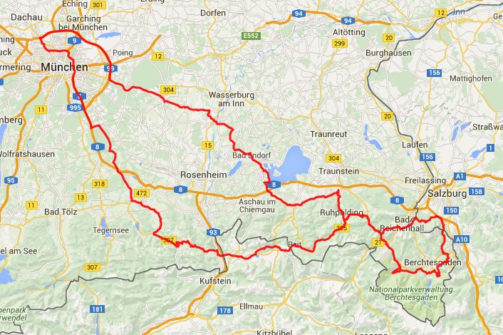 Ungefähr so, nur beim Rückweg bin ich Depp durch die Stadt gefahren, statt über die AB.