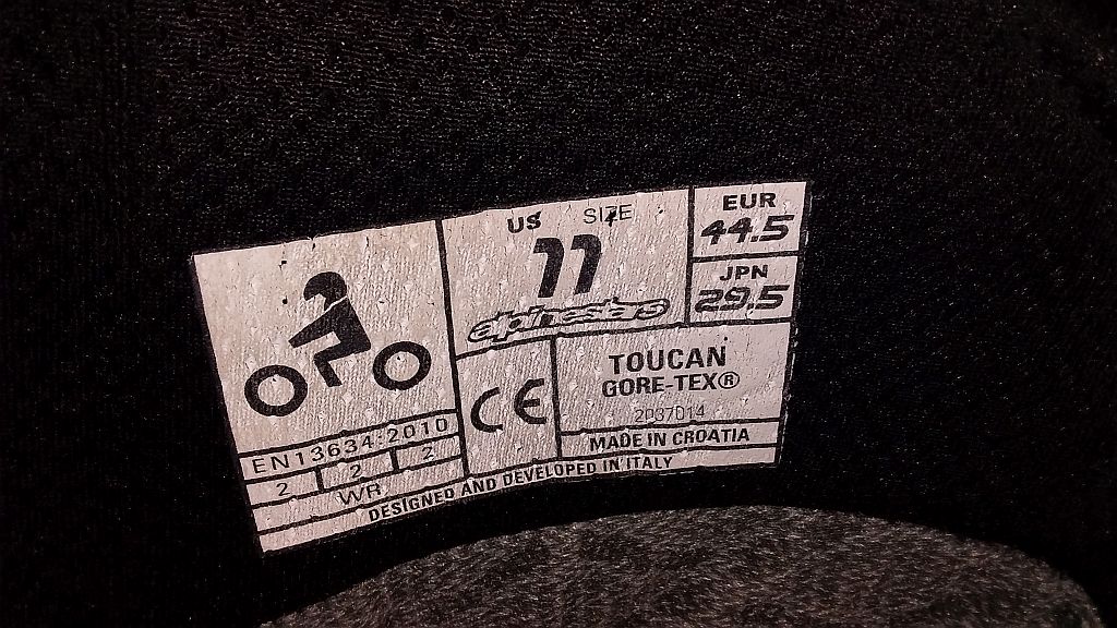Ich biete ein Paar Alpinestars Toucan Stiefel in Größe 44,5 (11) an. Da ich kein ernsthaftes Gelände fahre stehen die Stiefel schon seit einiger Zeit hier rum. Ich habe sie nur einmal zur Probe getragen, bin aber keinen Meter damit gefahren. Und vom Rumstehen werden sie sicher auch nicht besser. Sie sind halt etwas staubig aber noch neuwertig und sauber.