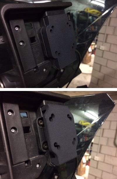 Ich wollte meinen Roadbook-Halter (ein kleines manuelles aus Portugal namens RB701) anstatt irgendwo am Lenker mit RAM-Mounts zu montieren direkt in die abschliessbare Nav 5 Halterung montieren, dann ist es immer zentral und kein einseitiges Gewicht am Lenker.