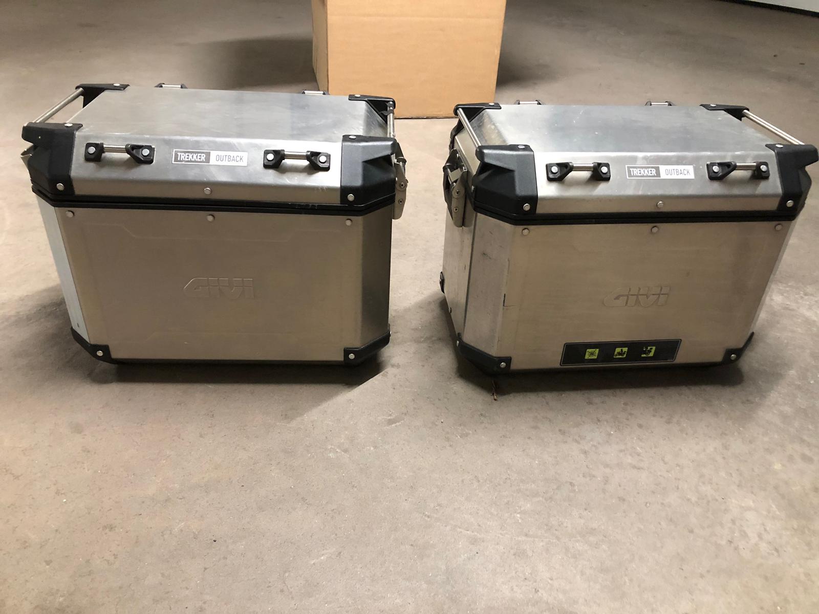 Biete zwei Alukoffer von Givi mit Halter für die R1250Gs an. Die Koffer haben keine Dellen. Leichte Kratzer an den Deckel vom Auf- und Absteigen. 3 Schlüssel sind dabei. Preis 690 Euro plus Versand.