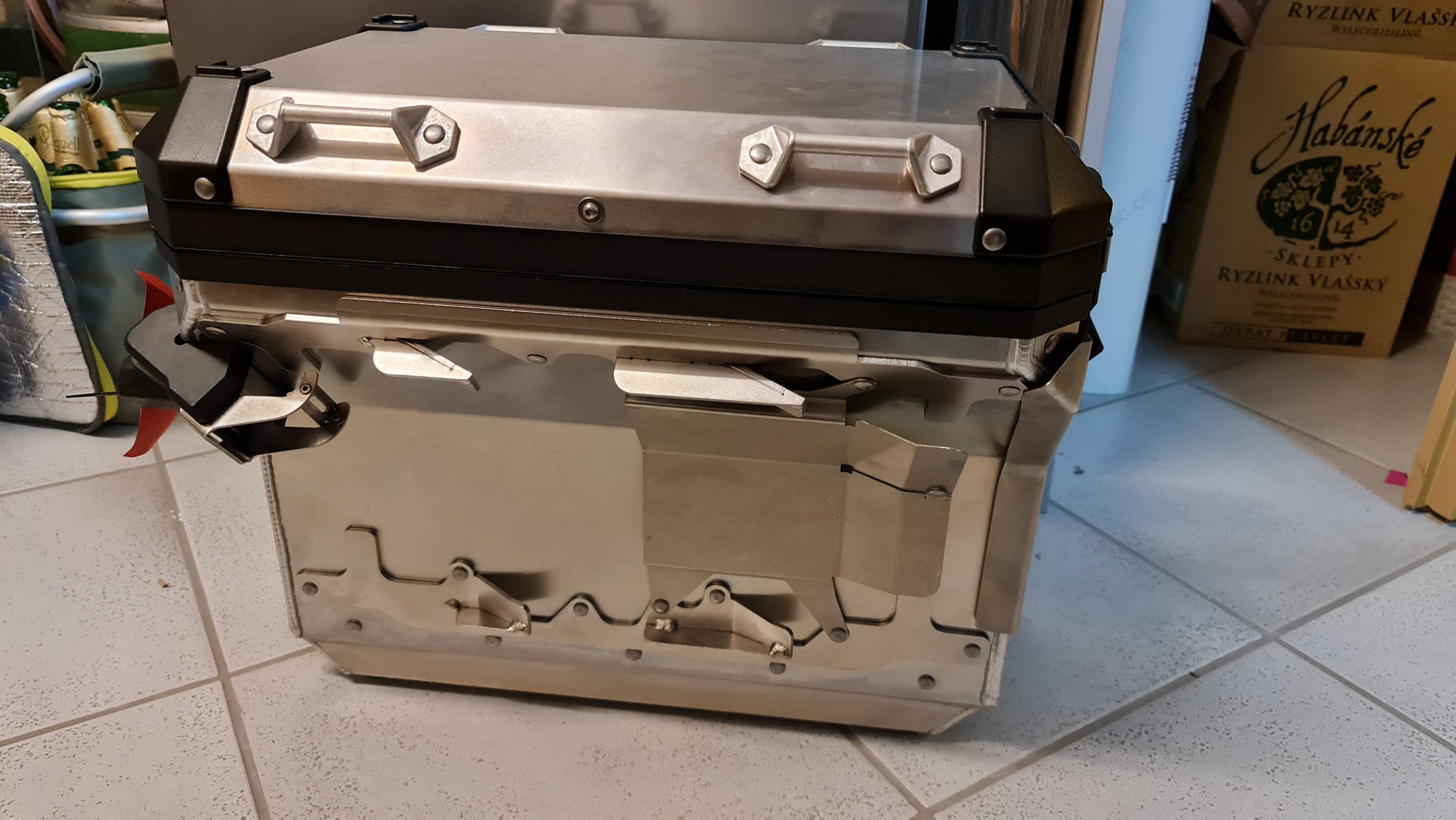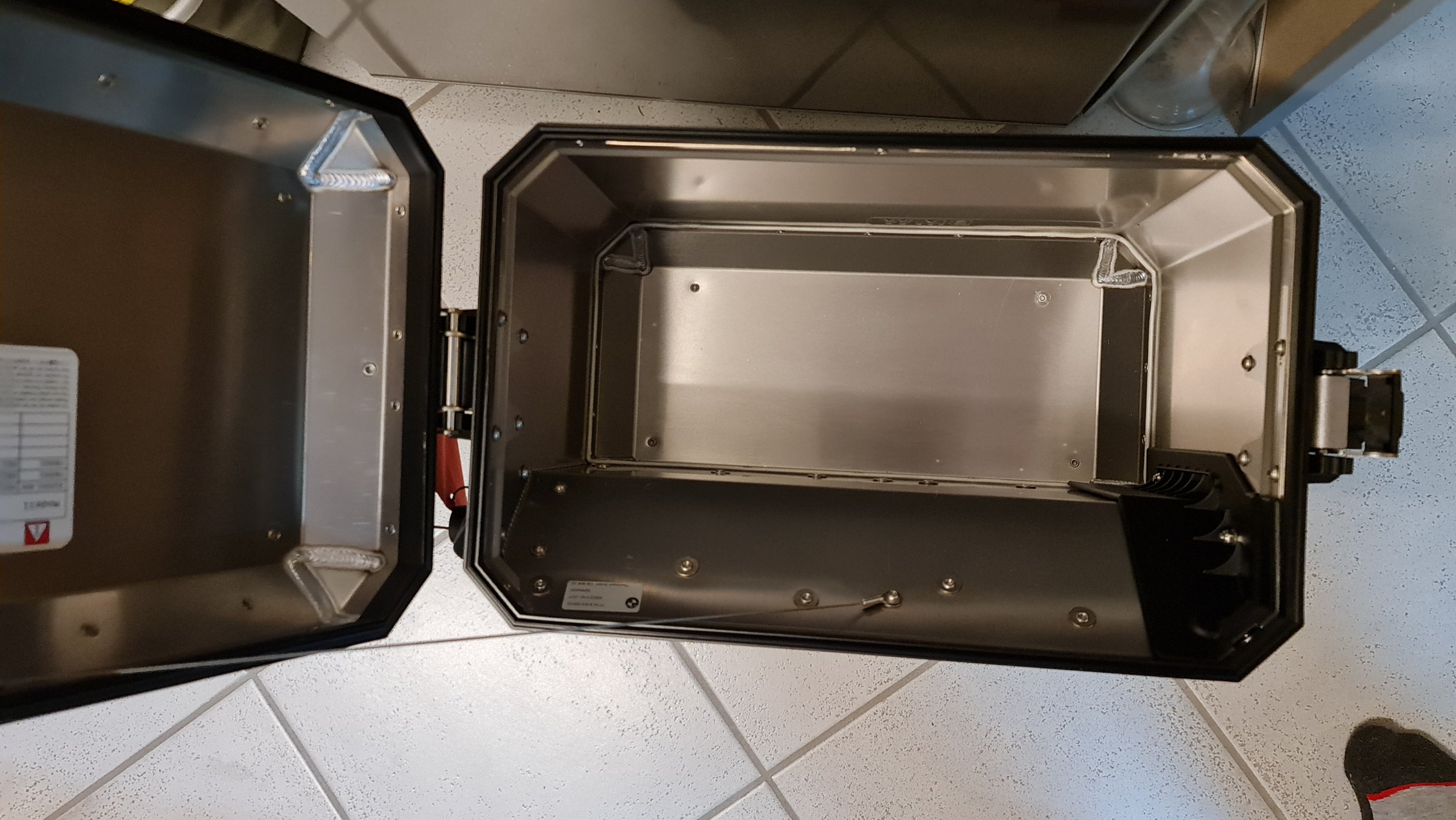 - Koffer links ohne Schlösser