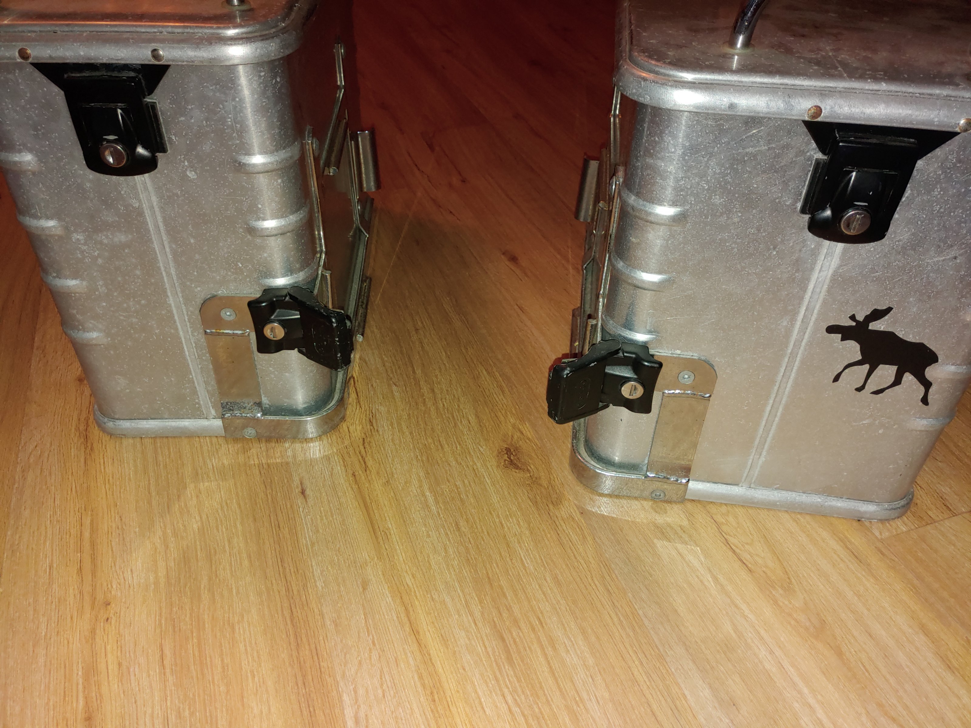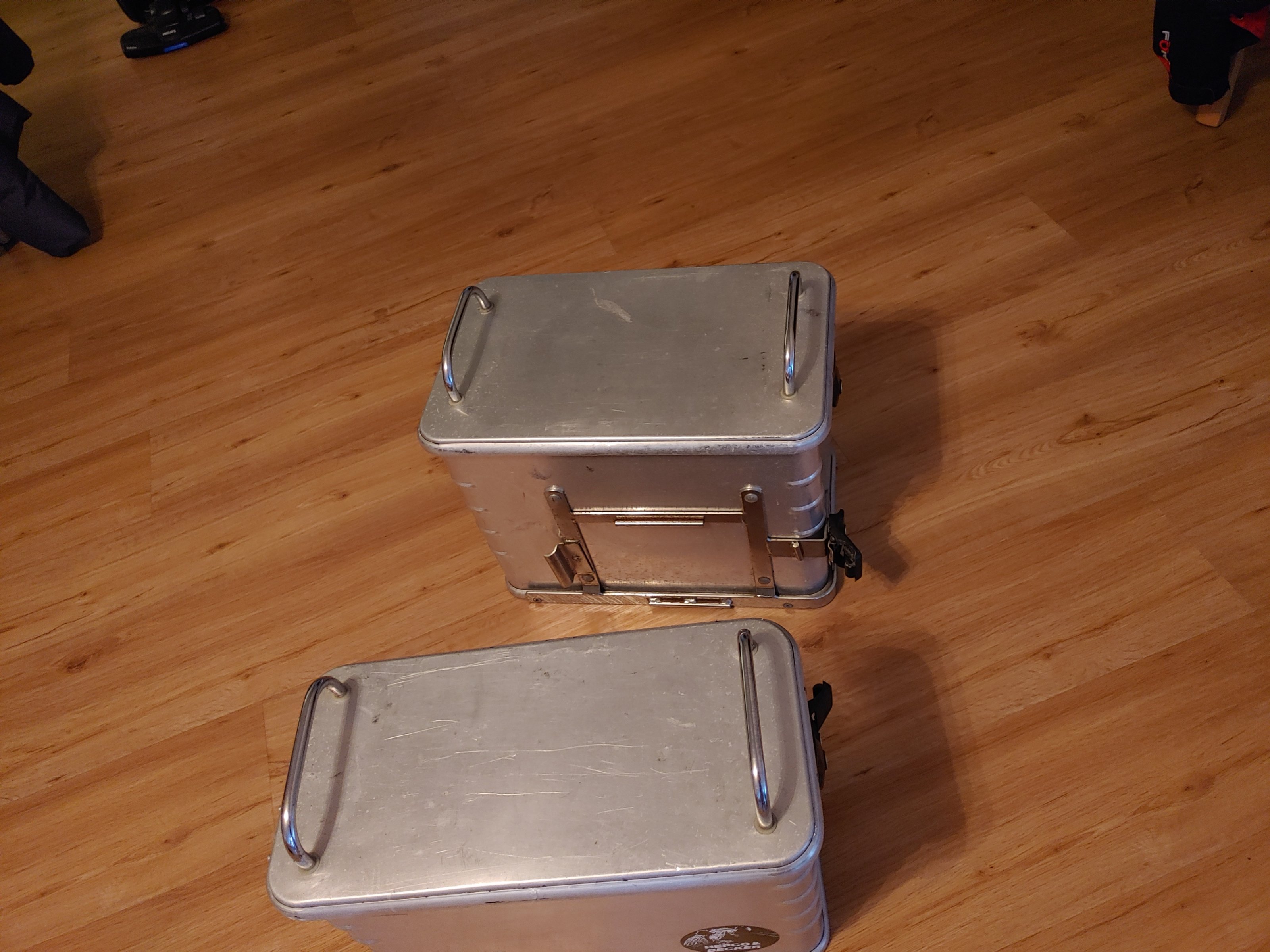 da ich nur mit Hecktasche unterwegs bin, biete ich hier meine zwei Alukoffer von Hepco und Becker an. Asymmetrisch-also links 35L und rechts 40L. Ein Schlüssel passt für alle 4 Schlösser. Normale Gebrauchsspuren. Preis: 400 Euro für beide!