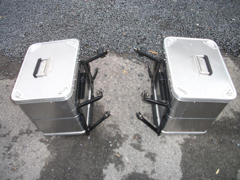 Ich Verkaufe einen Satz Alukoffer von Allit in den maßen B 38 cm H 36 cm T 28 cm .Waren auch nur für eine Urlaubsfahrt montiert sind in einem sehr guten Zustand ohne beschädigungen .Montiert sind die Alukoffer auf einem Quick Look Trägersystem von SW Motech für die BMW 1150 GS welches innerhalb kürzester Zeit montiert oder demontiert wird .Die Alukoffer sind von innen zusätzlich mit Alublech verstärkt. Möchte gerne 300,- Euro dafür haben .Die Koffer sowie die Träger sind beides Abschließbar Versand 14,80 Euro wegen der Größe.