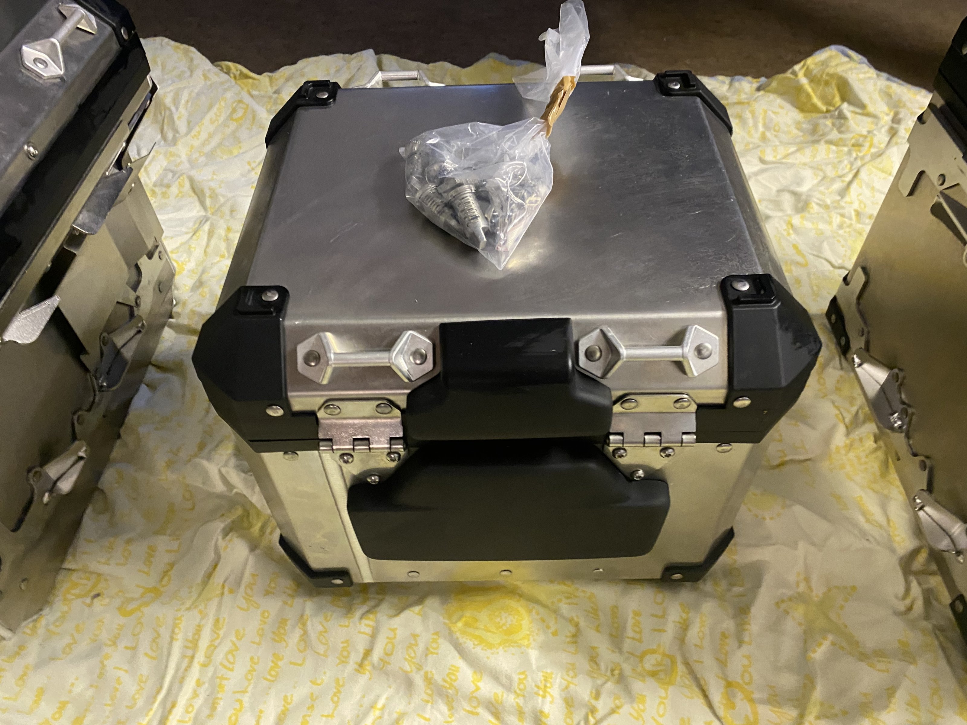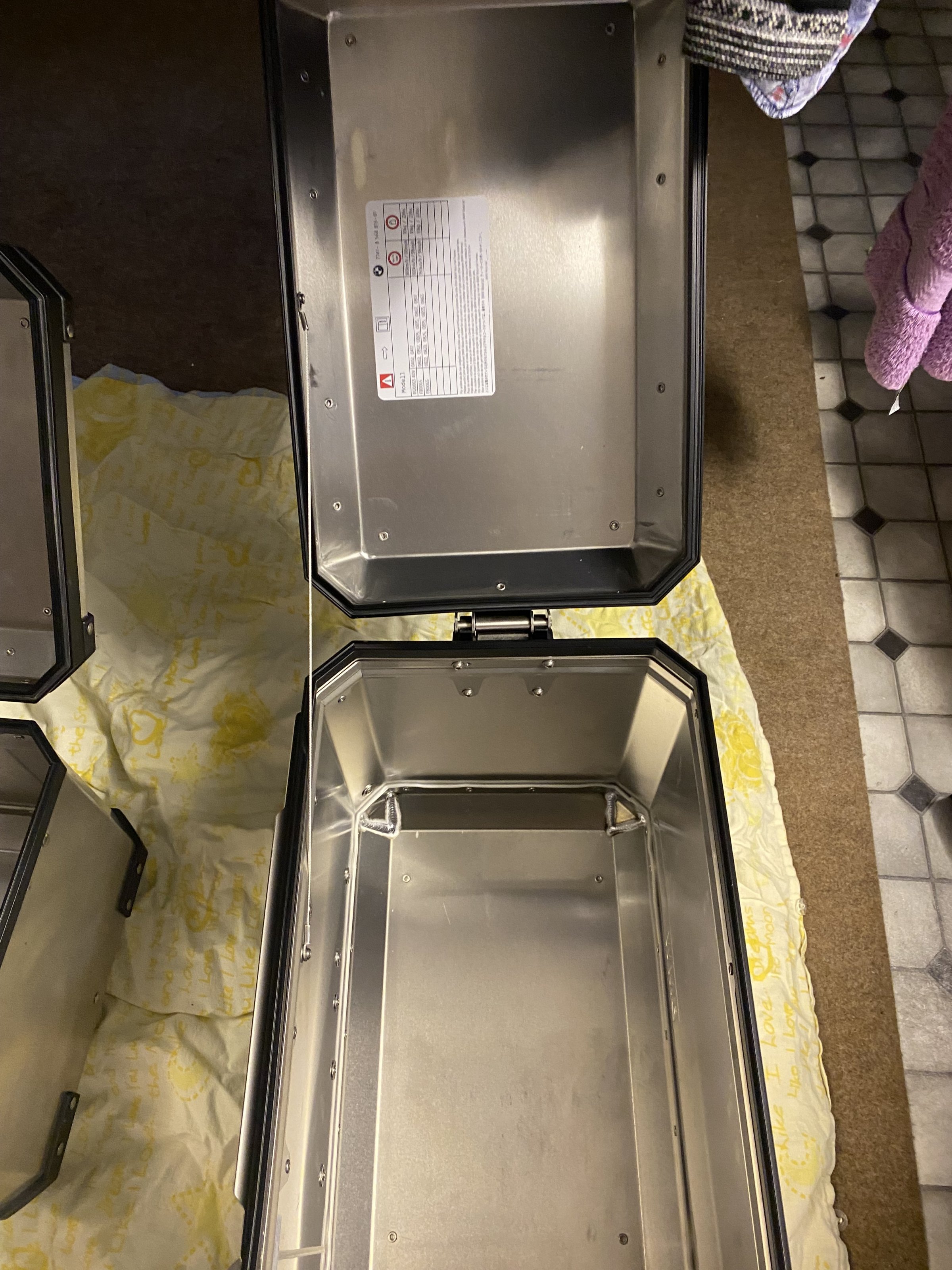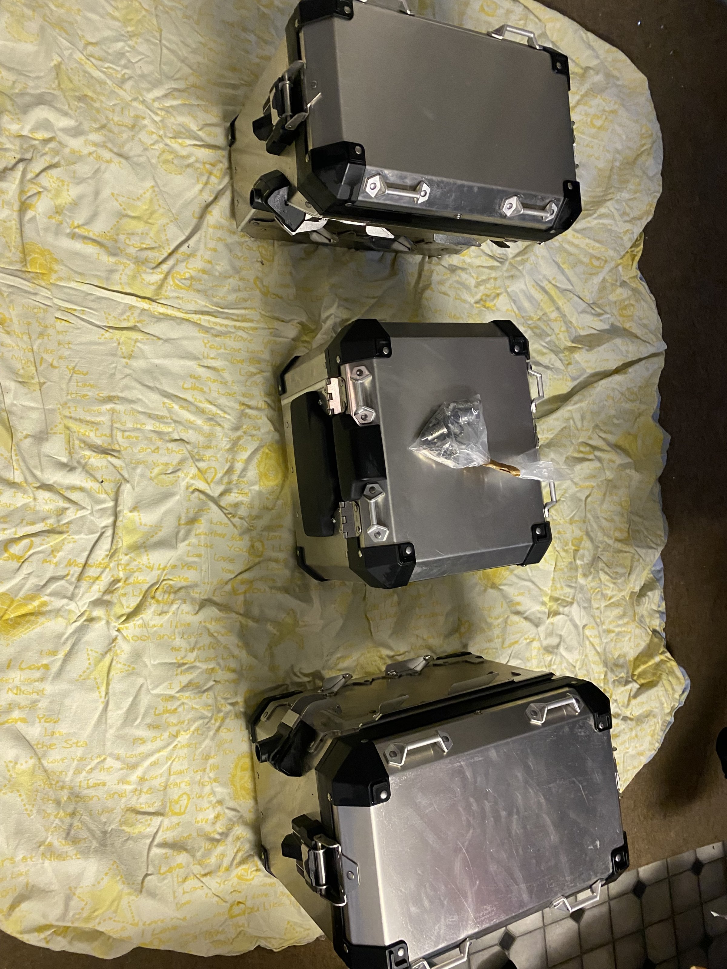 Verkaufe für 3 Touren benutzte original BMW 1250 GS Alukoffer links/ rechts und Tapcase mit Rückenpolster.