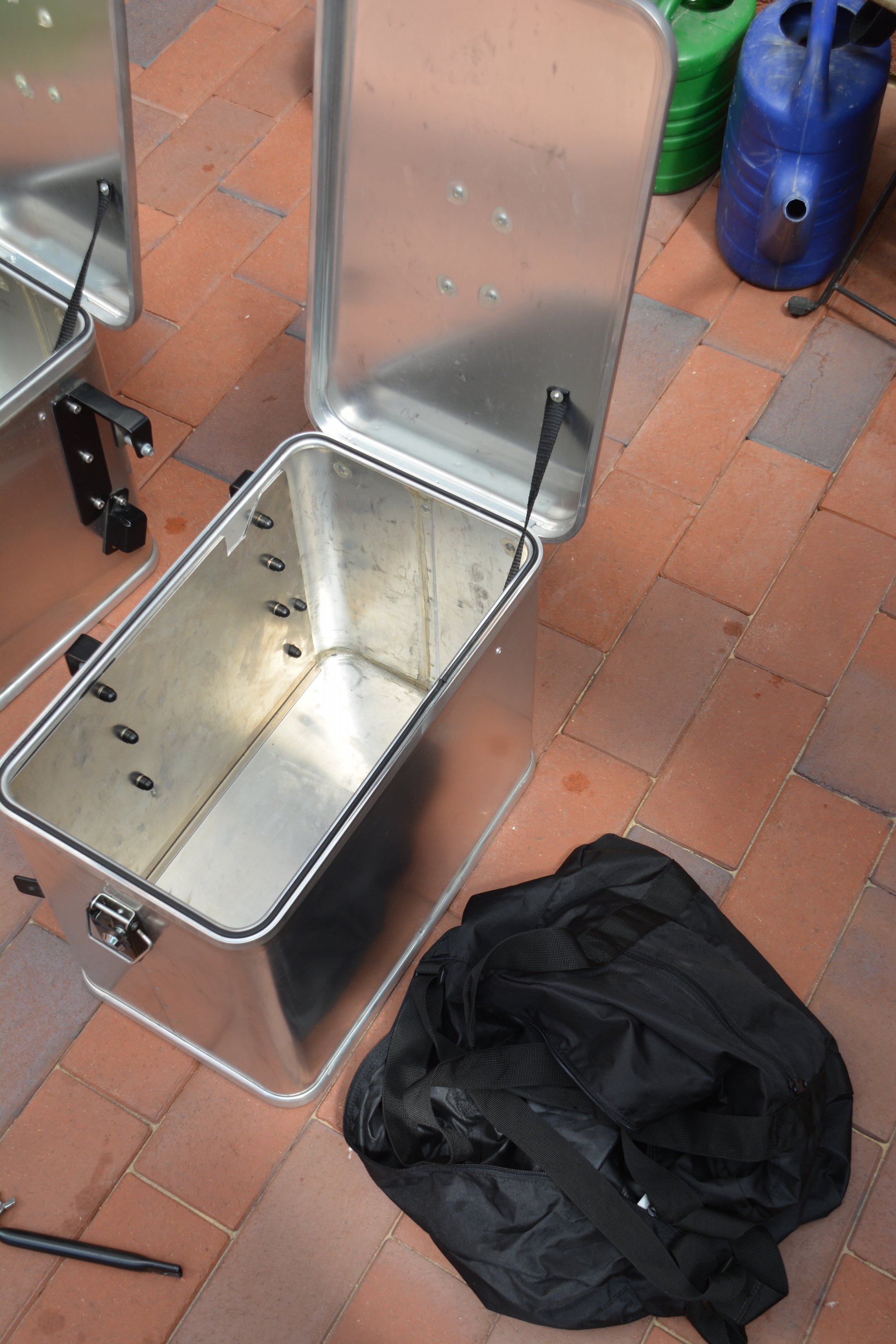 ich biete hier meine wenig genutzten Alukoffer mit speziellen Haltern für die Original BMW Kofferträger der R1100/1150 GS Modelle an.