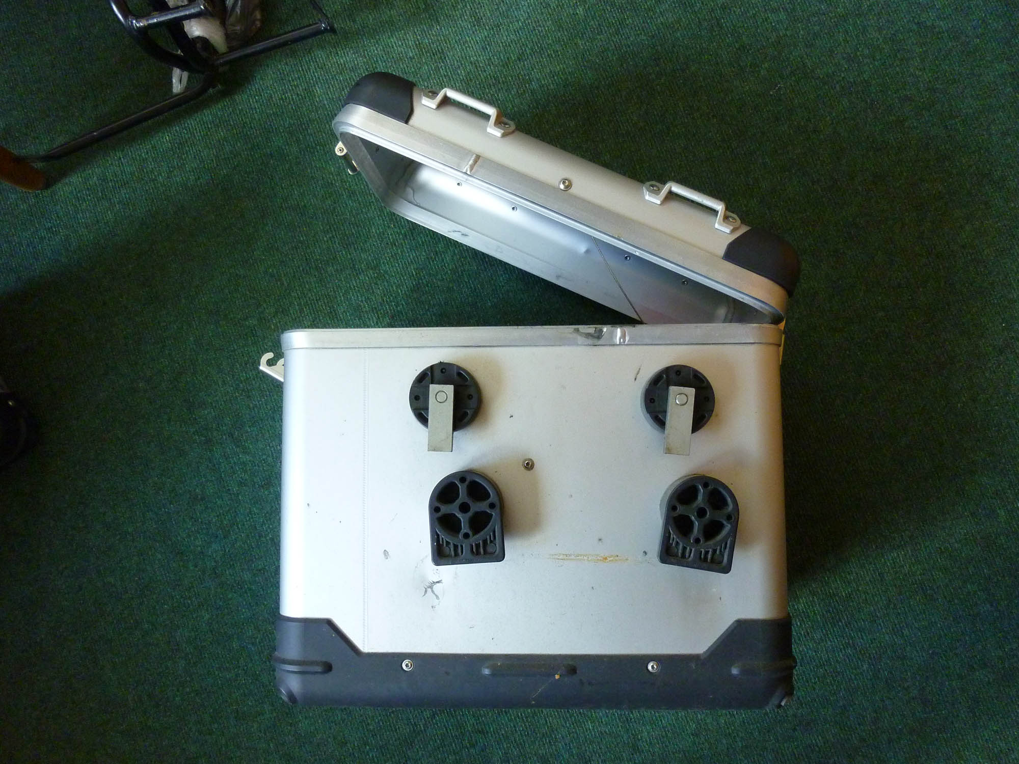 )Der Träger ist damals von mir schon gebraucht gekauft worden und hat Roststellen und ist vielleicht auch verbogen. Er passt an eine Suzuki XF 650 Freewind.
