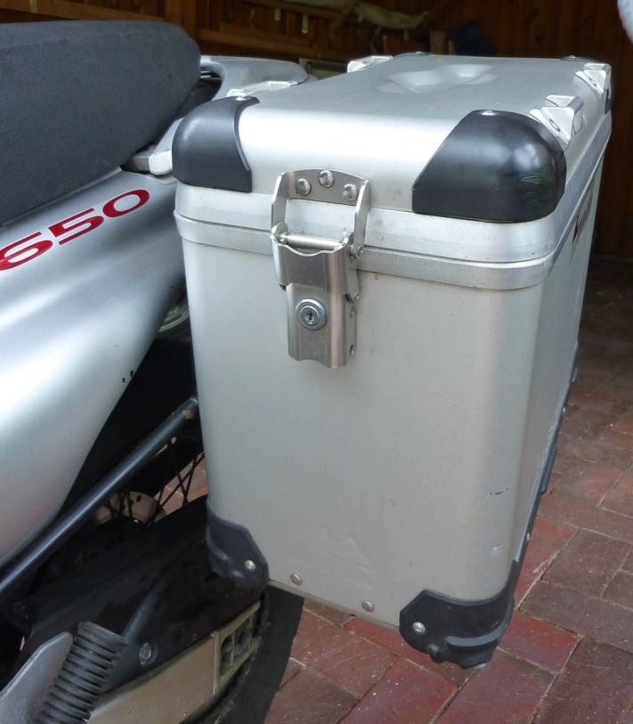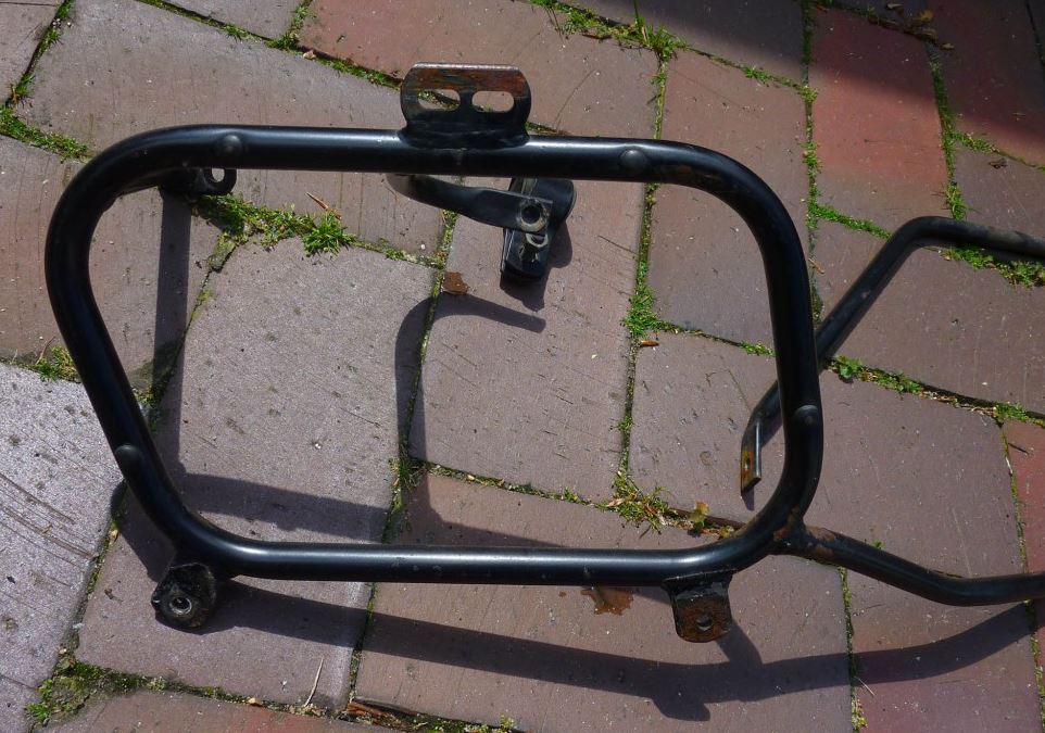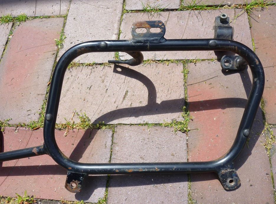 Der Träger ist damals von mir schon gebraucht gekauft worden und hat Roststellen und ist vielleicht auch verbogen. Er passt an eine Suzuki XF 650 Freewind.