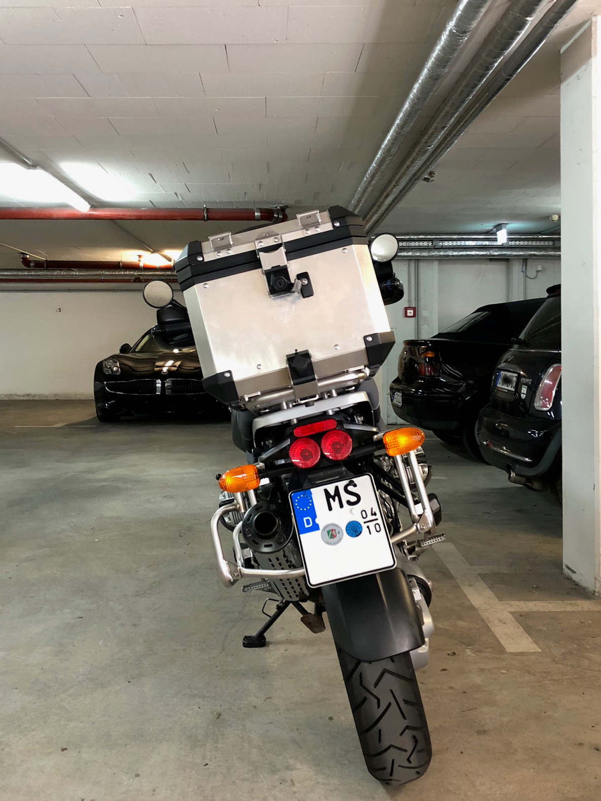 Im Ergebnis bin ich sehr zufrieden, insbesondere weil nun nicht nur die beiden seitlichen BMW Alukoffer zu montieren sind, sondern ebenso das passende Topcase.