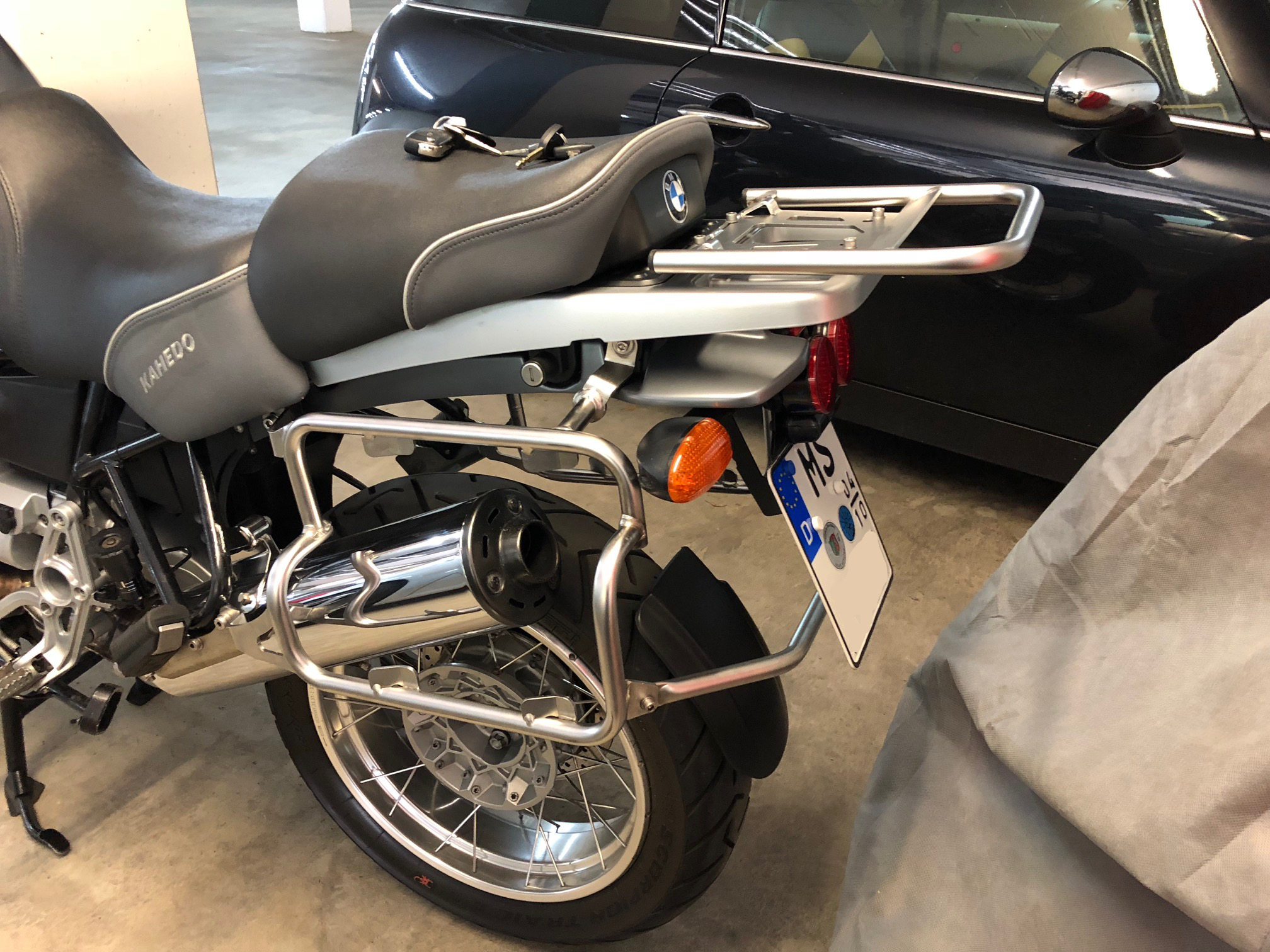 Zudem kann alles ohne Rückstände zurückgebaut und auch verkauft werden. Heck meiner 1150GS, das Topcase und F800GS Halteplatte sind bis auf vier Löcher unverändert.