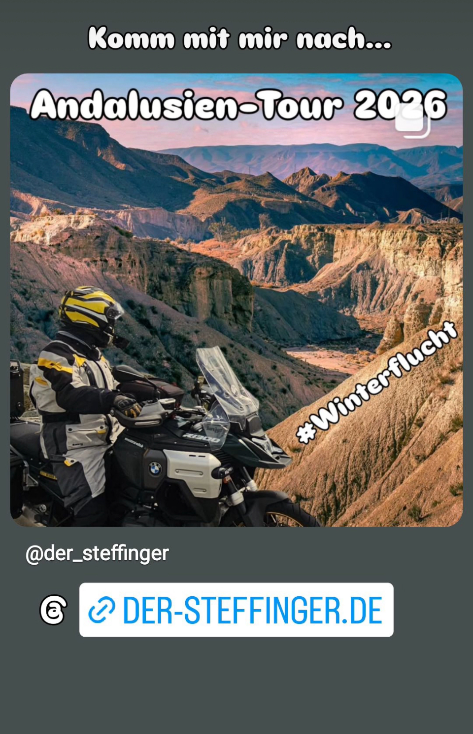 Beim Kaffee sah ich die Story vom Daniel Steffen und die Möglichkeit 2026 im Febrauar nach Andalusien zu reisen inklusive Motorrad Transport! Direkt gebucht und die Vorfreude ist groß