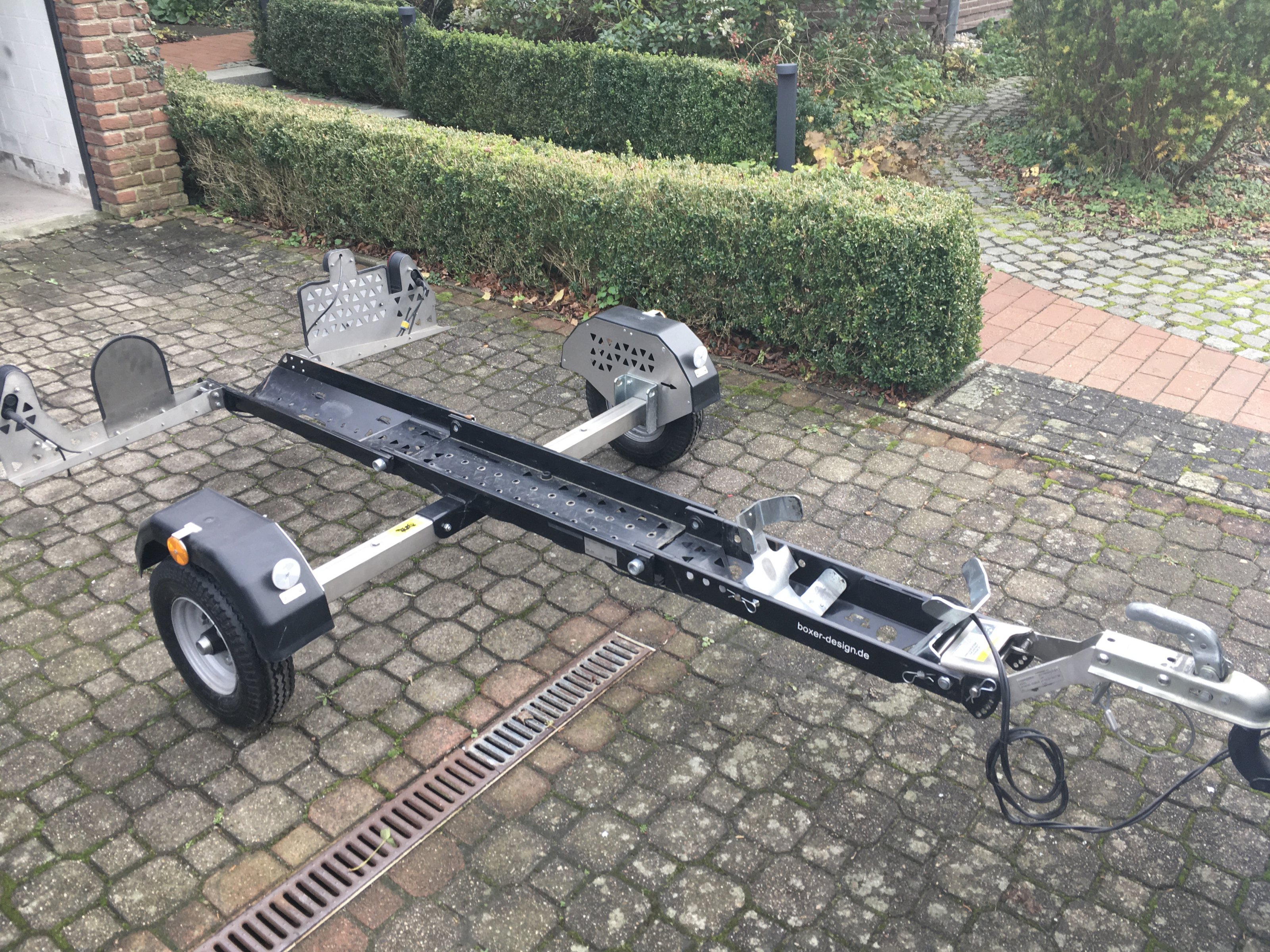 Der Anhänger kann komplett zerlegt und platzsparend verstaut werden. Transportiert wurde eine GS 1250 ADV. Durch das Kippen und der Wippe ist das Beladen kinderleicht.
