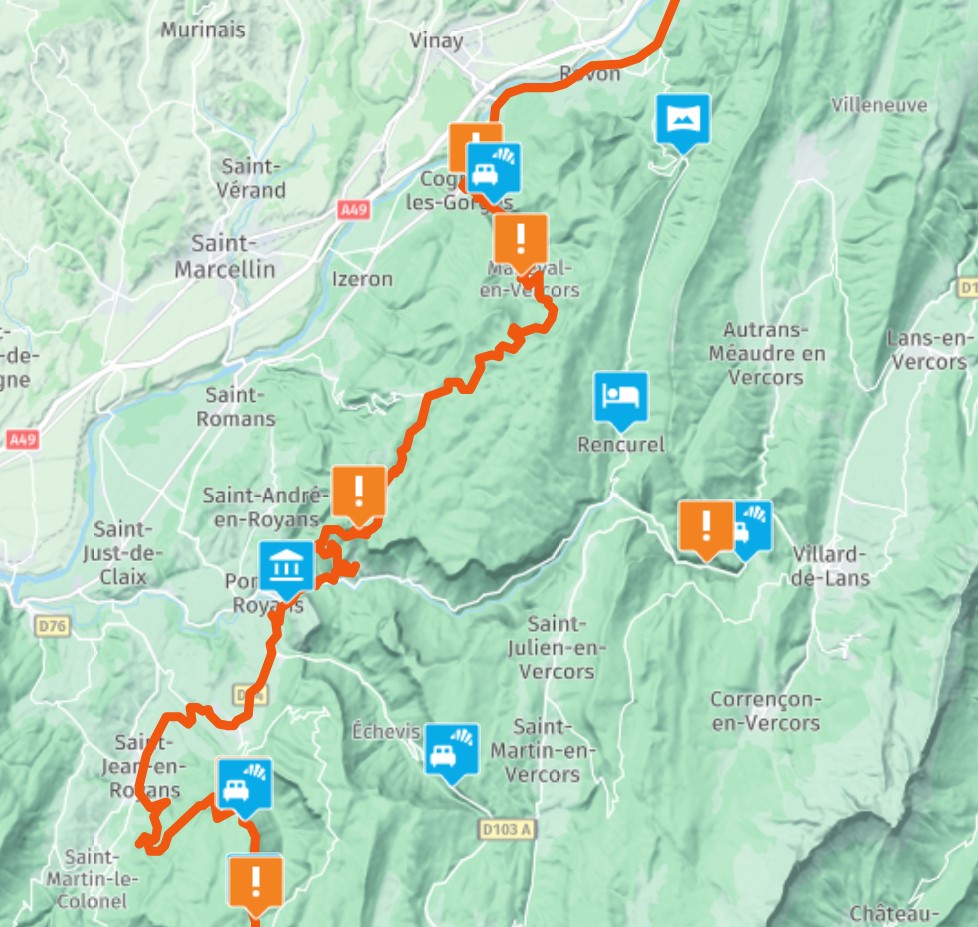 Ich würde gerne vom Norden her durch die Schlucht "Gorges du Nan" und anschließend die Panoramastraße "Route de Presles" fahren. Muss mal checken, wie ich meinen Strecken-Wunsch mit dem Le Maronnier verbinden kann.