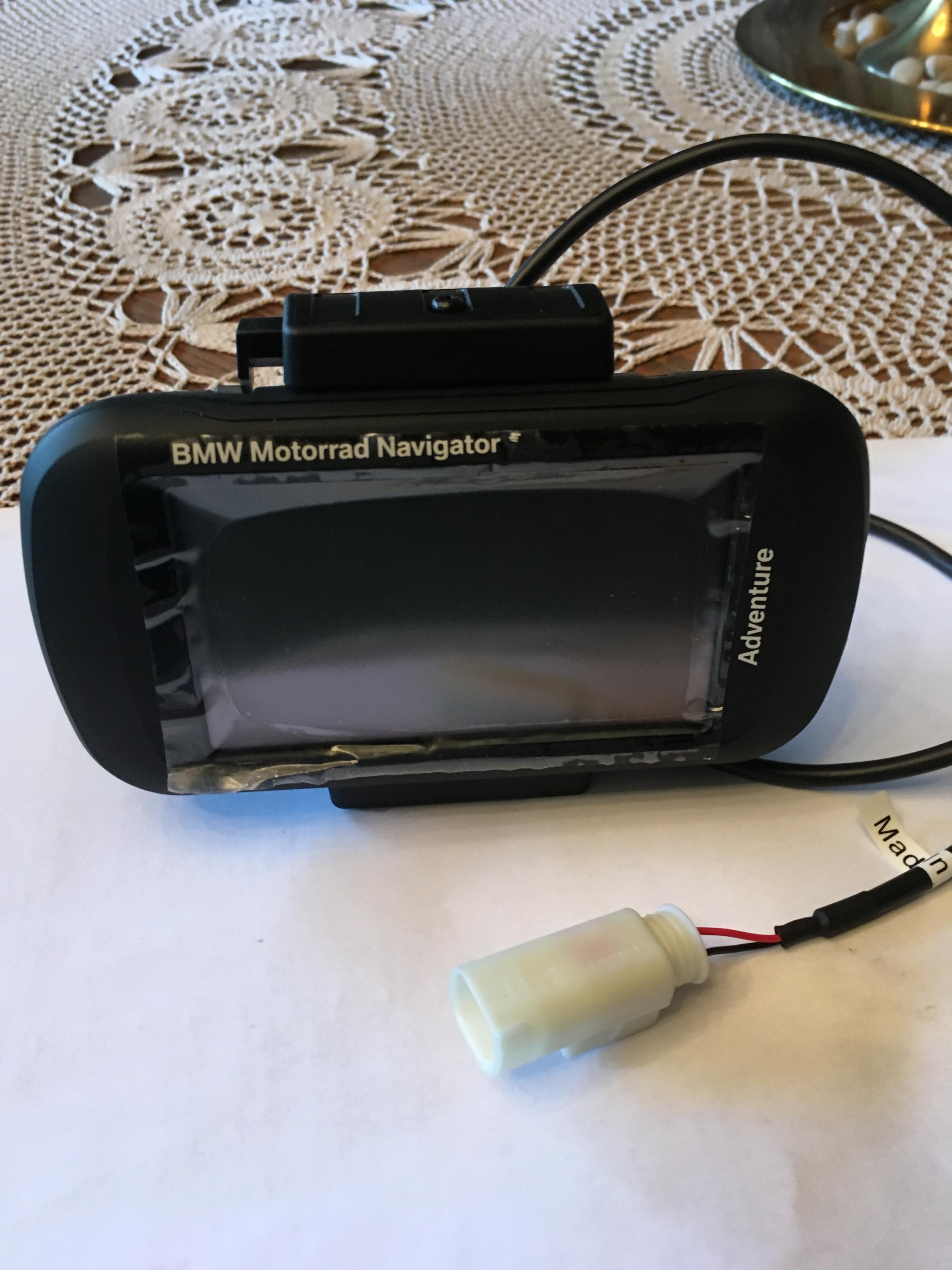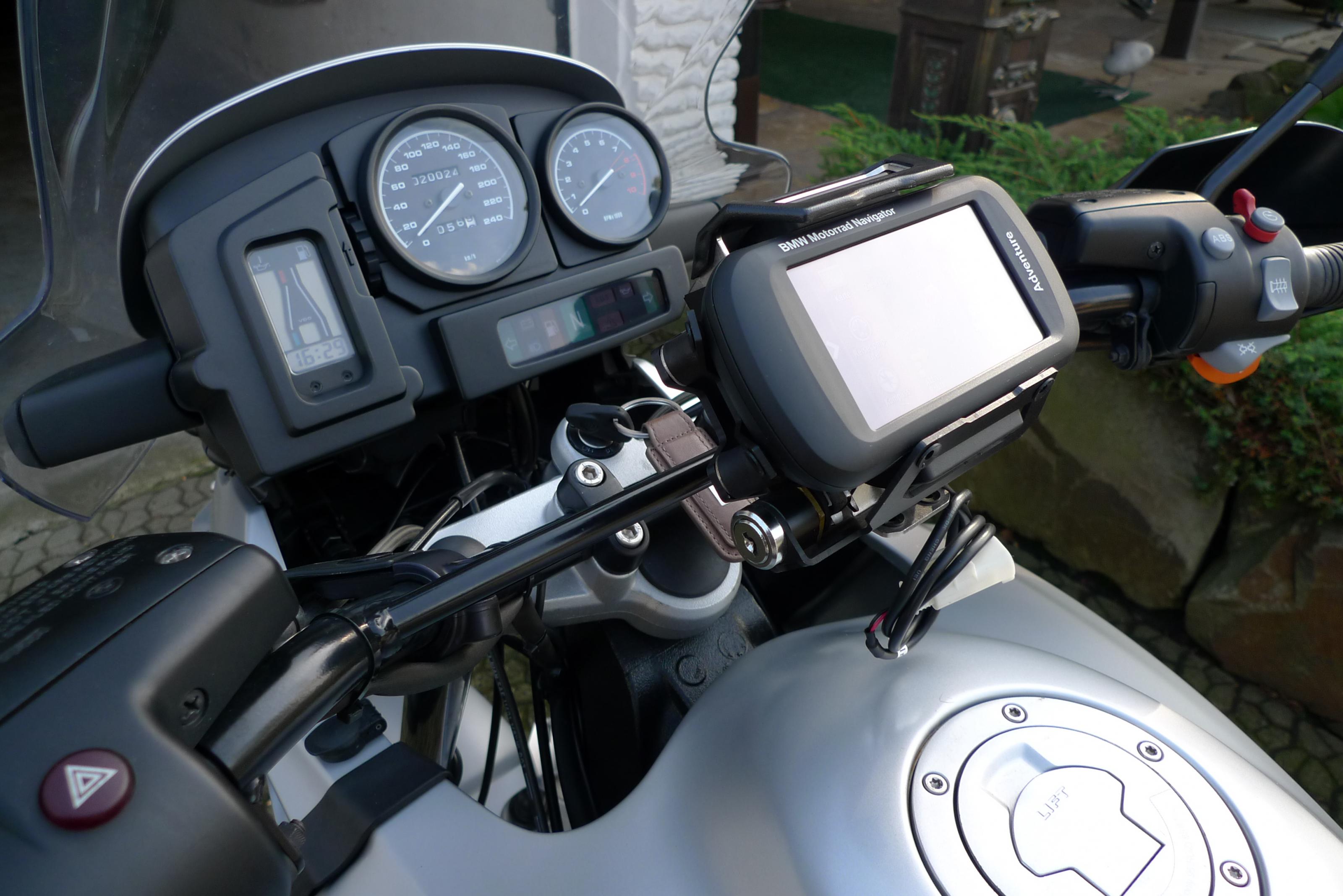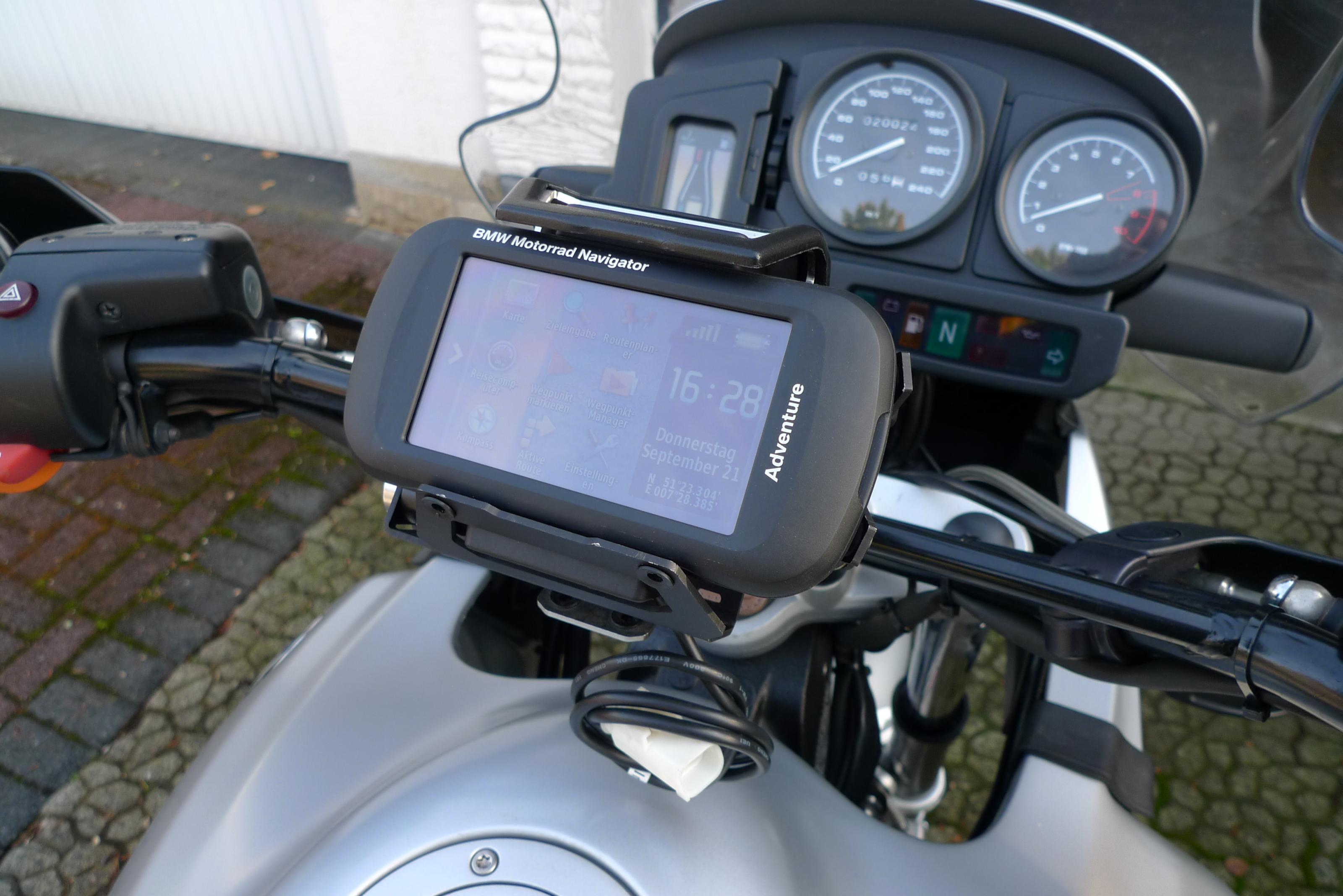 Als kleine Lösung kann man den Garmin-Fahrradhalter beschaffen und das Montana mit einem USB-Kabel und dem BMW-Adapterstecker an die Bordsteckdose anschließen.