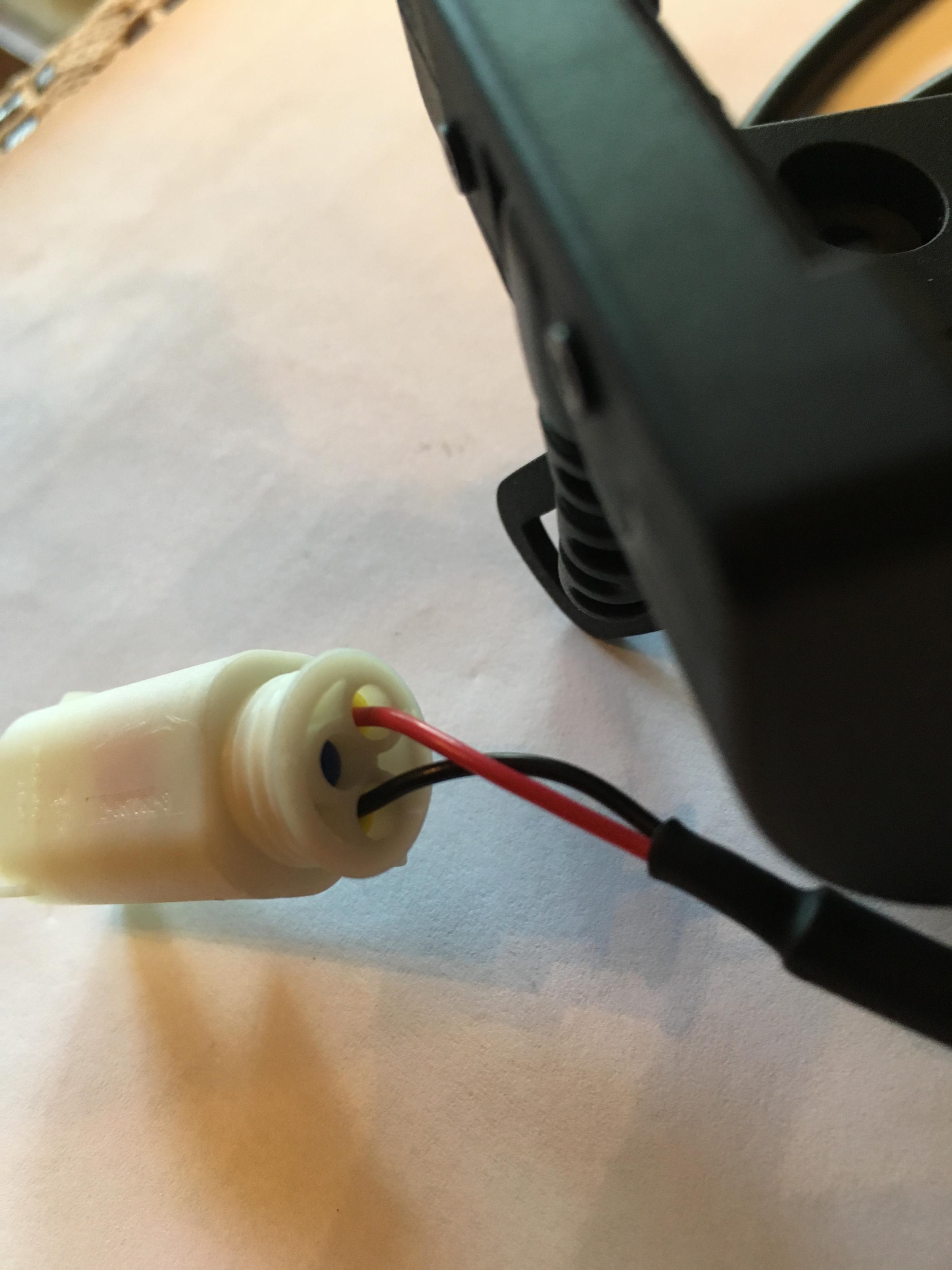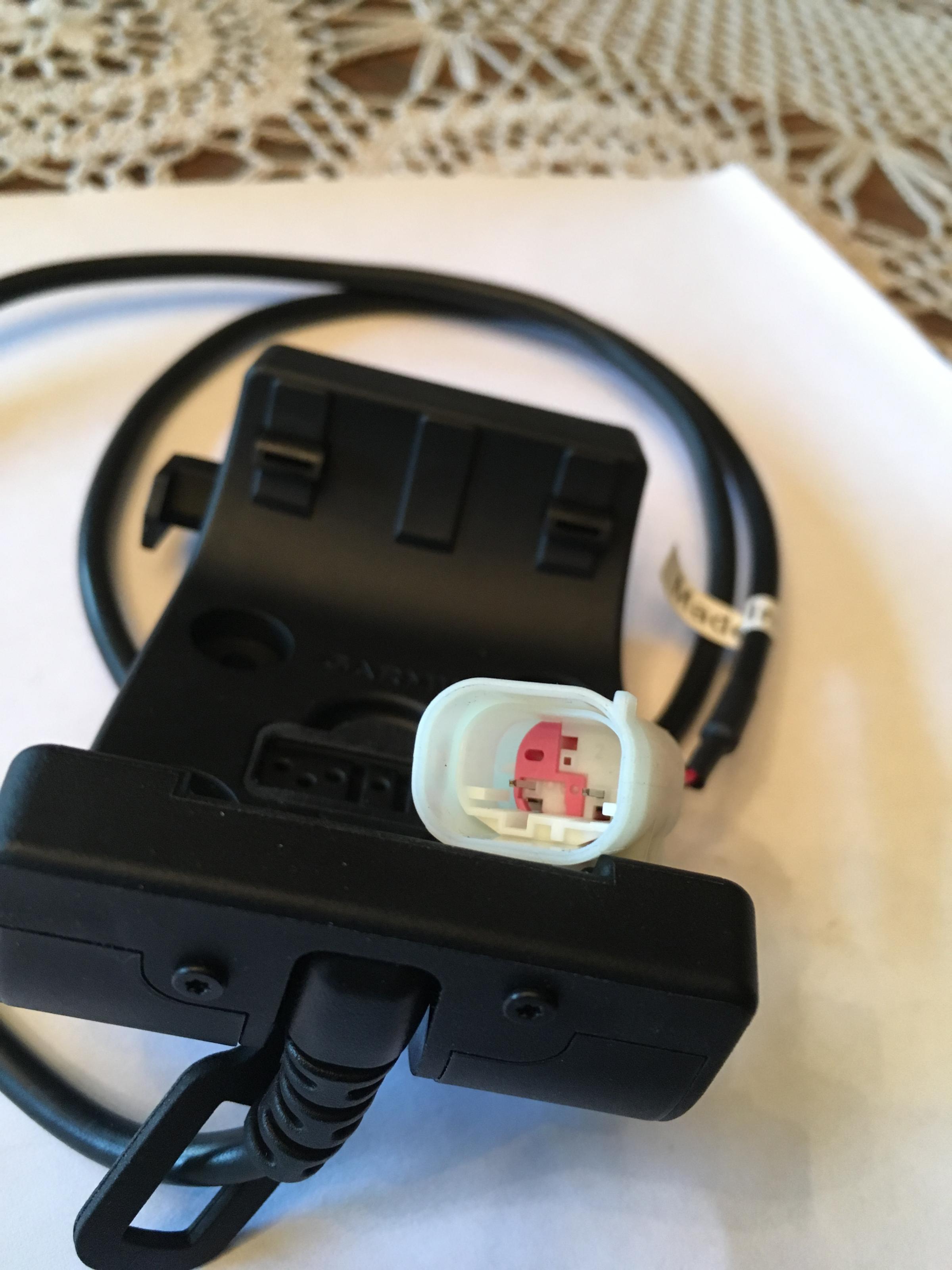 Die Kabelenden sind offen (blank) und müssen mit einem Stecker für die SZ (Sonderzubehör) Buchse verbunden werden. Die Halterung soll den Strom aus der SZ-Buchse ziehen.