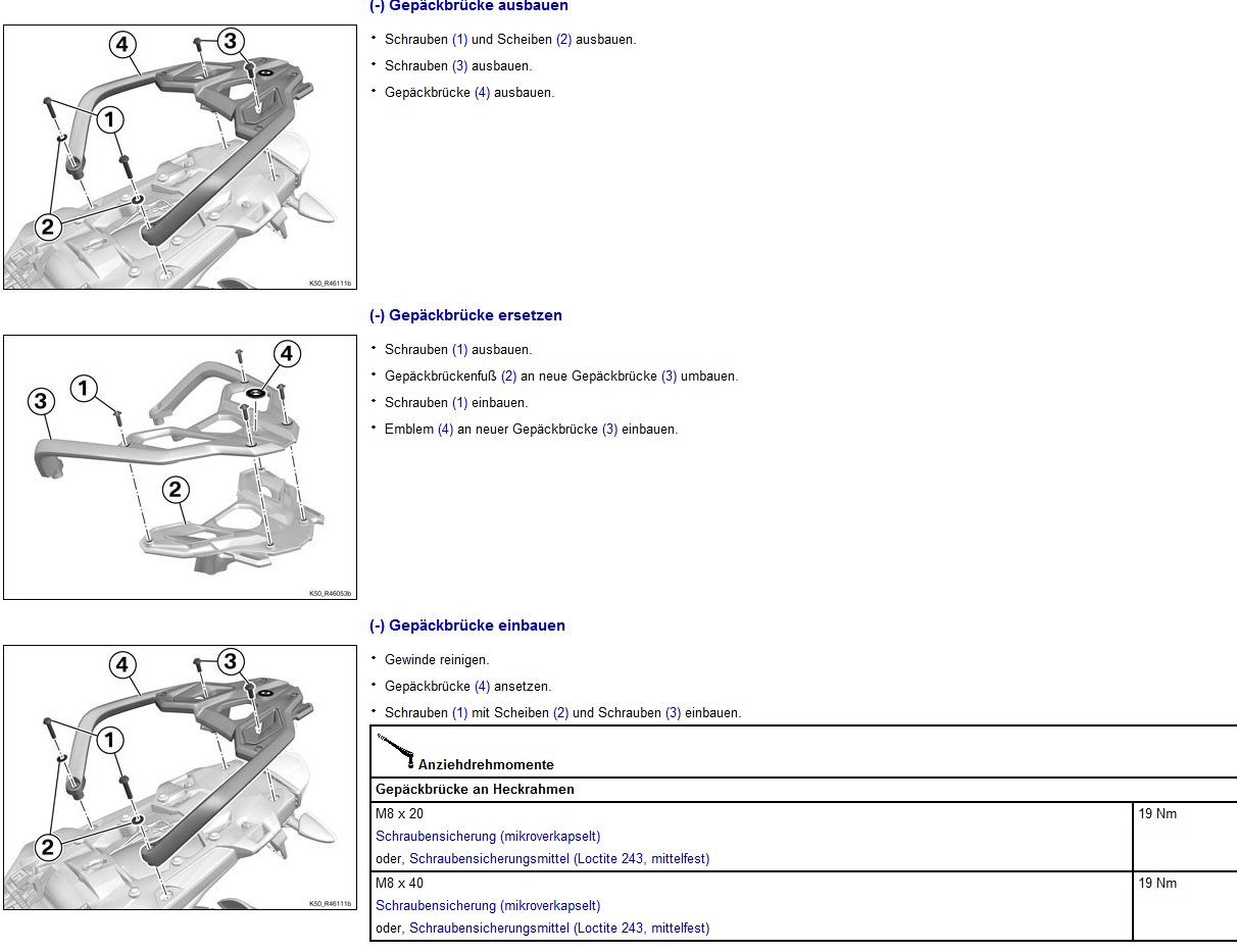 ich verstehe garnicht wie seit 1975 als noch alle Schrauben außer die vom Rad und Zylinderkopf händisch vernünftig mit Gefühl angepasst an die Größe und mit richtiger Hebellänge zuverlässig angezogen wurden, nun plötzlich bei jeder profanen Schraubverbindung alle nach Drehmomentwerten schauen. Die wurden ja nur wegen der maschinellen und nachvollziehbar gleichen Serienfertigung im Werk so proklamiert. Bei Bremssattel oder Gabelschrauben ok von mir aus, ( klar nun kommt dass ein Topkäse dran ist, der wegfliegen könnte) nee die Halter brechen durch zu viel eingelagertes Gewicht und ggf verspanntem Anbau des Zwischenhalters, wie ich zuletzt an einem R1150GS Aluhalter feststellen musste. Locktide mittelfest beruhigt das Gewissen.