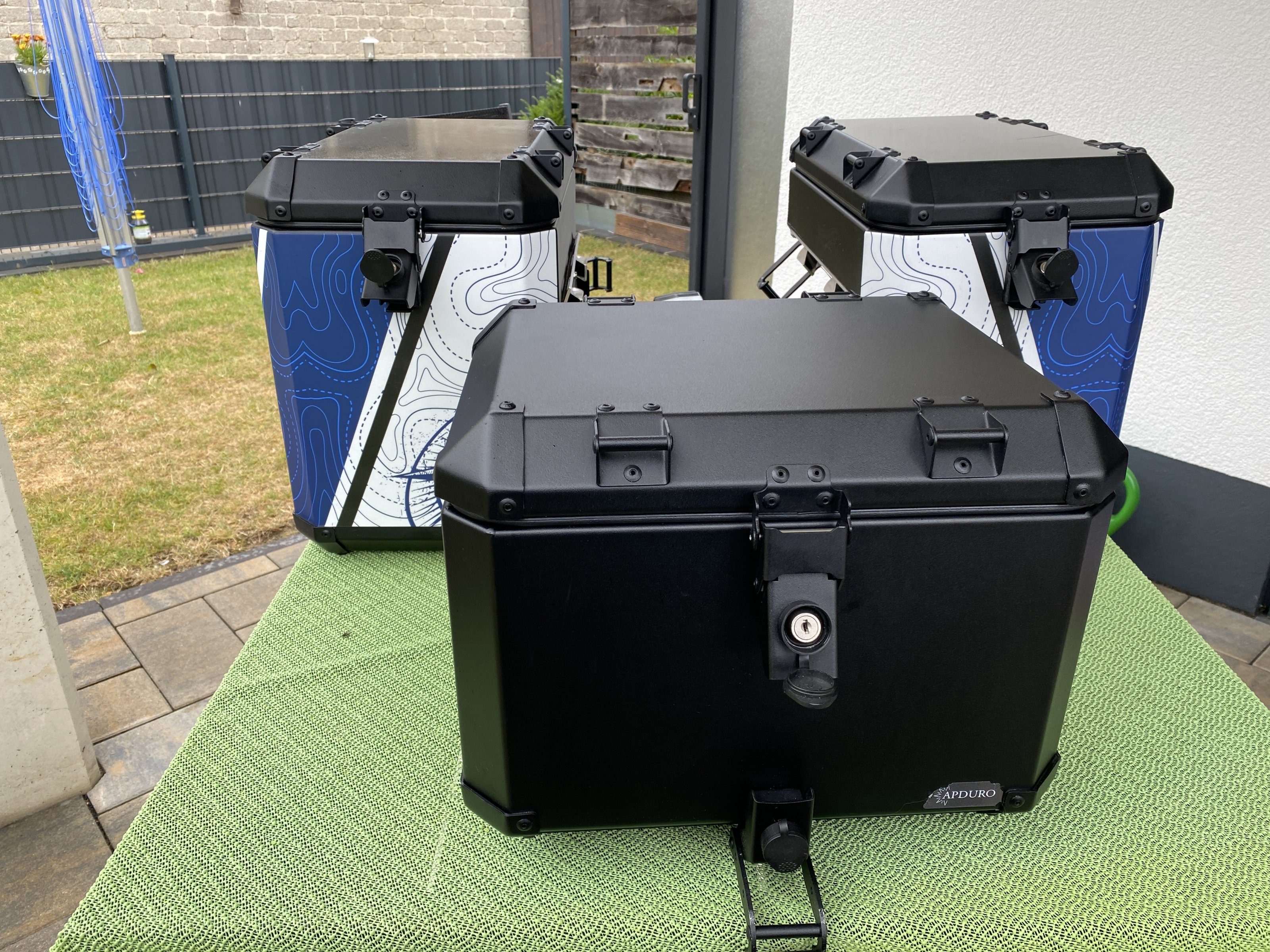 Ein Apduro Kofferset Gr. XL + Topcase Gr. M + Netze + Innentaschen in Black Edition