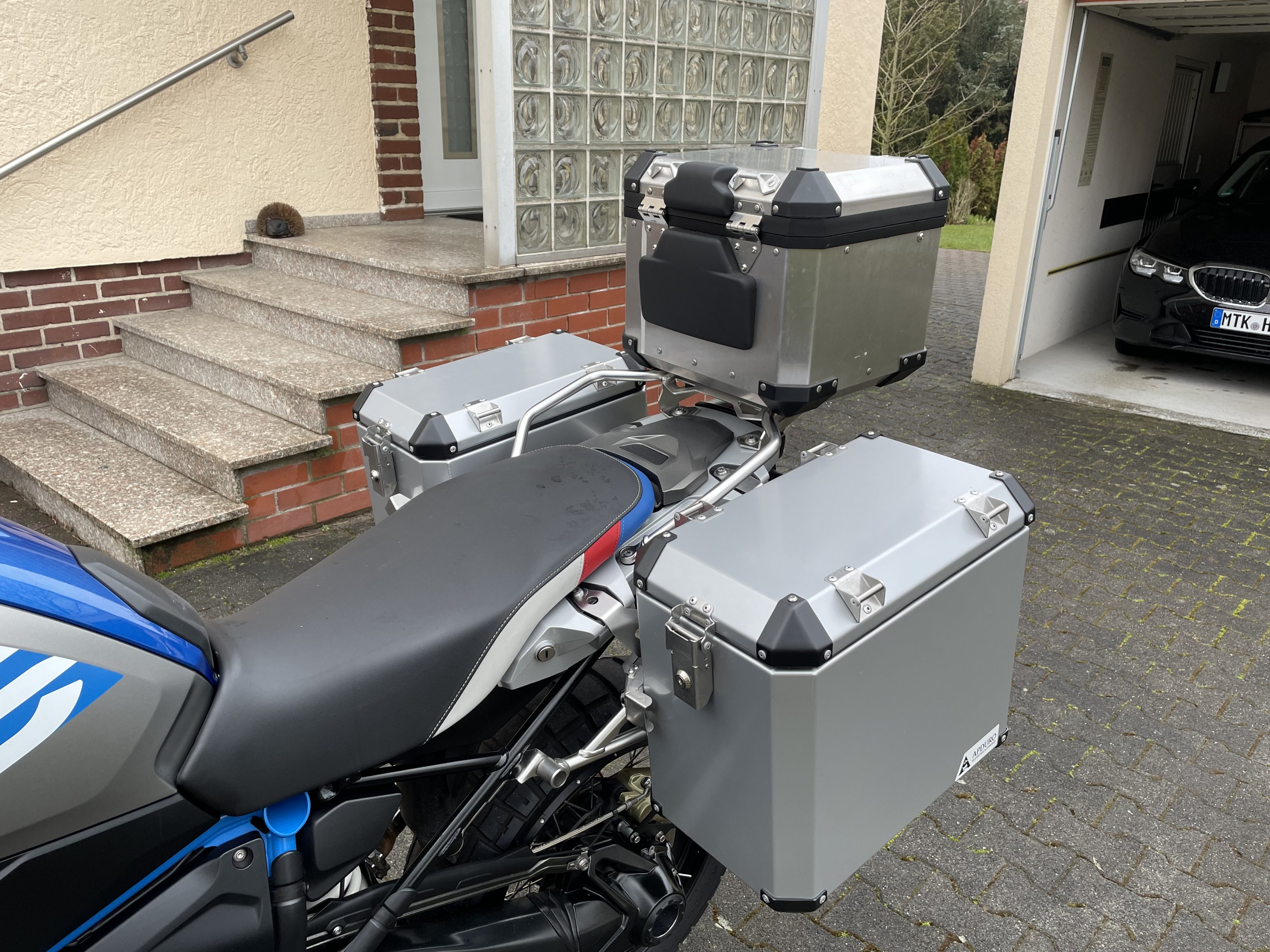 Da sagt der freundliche Herr bei Minute 5:44: "Gleichschließung gibt es nicht bei Apduro, ihr bekommt immer 4 Schlüssel dazu." Dadurch hat sich das Thema erledigt und ich habe das Video spontan geschlossen und nicht weiter geschaut. Jetzt ist es zu spät, die BMW Alukoffer stehen schon in der Garage und ich damit auch zufrieden.