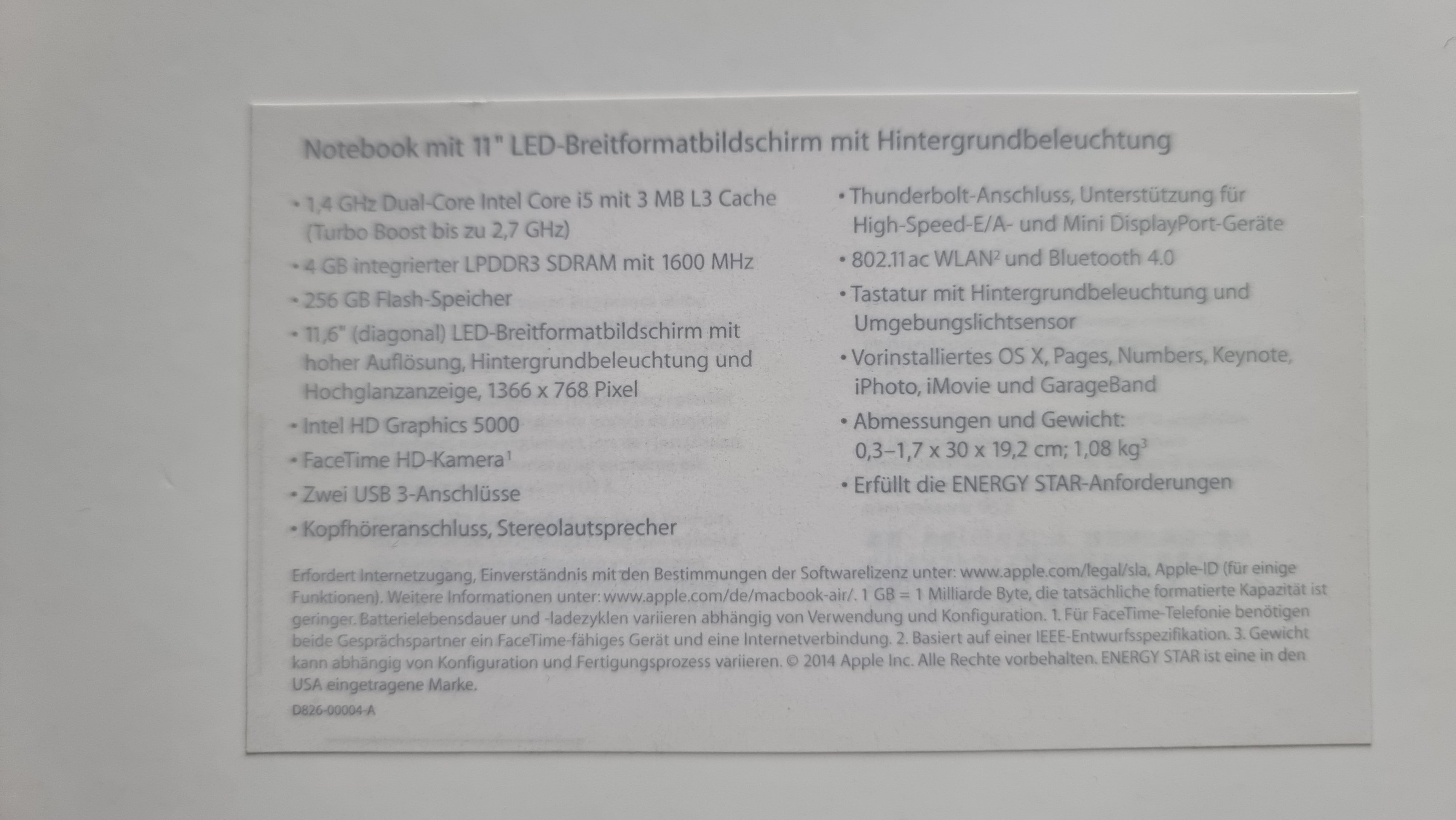 Diskutiere Apple MacBook Air 11" Intel i5, 256 GB SSD, 2014 im Erledigte Biete-Anzeigen Forum im Bereich Biete (privat); Verkaufe mein MacBook Air der noch den kleinen 11" Bildschirm hat und daher ideal für Reisen oder hohe Mobilität ist.