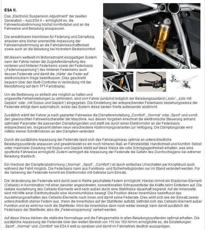 Zu deiner Info, du Allwissender, ESA II wurde in die K16 Reihe verbaut bis zum Modell 2017 aber NIE in eine R1200GS.