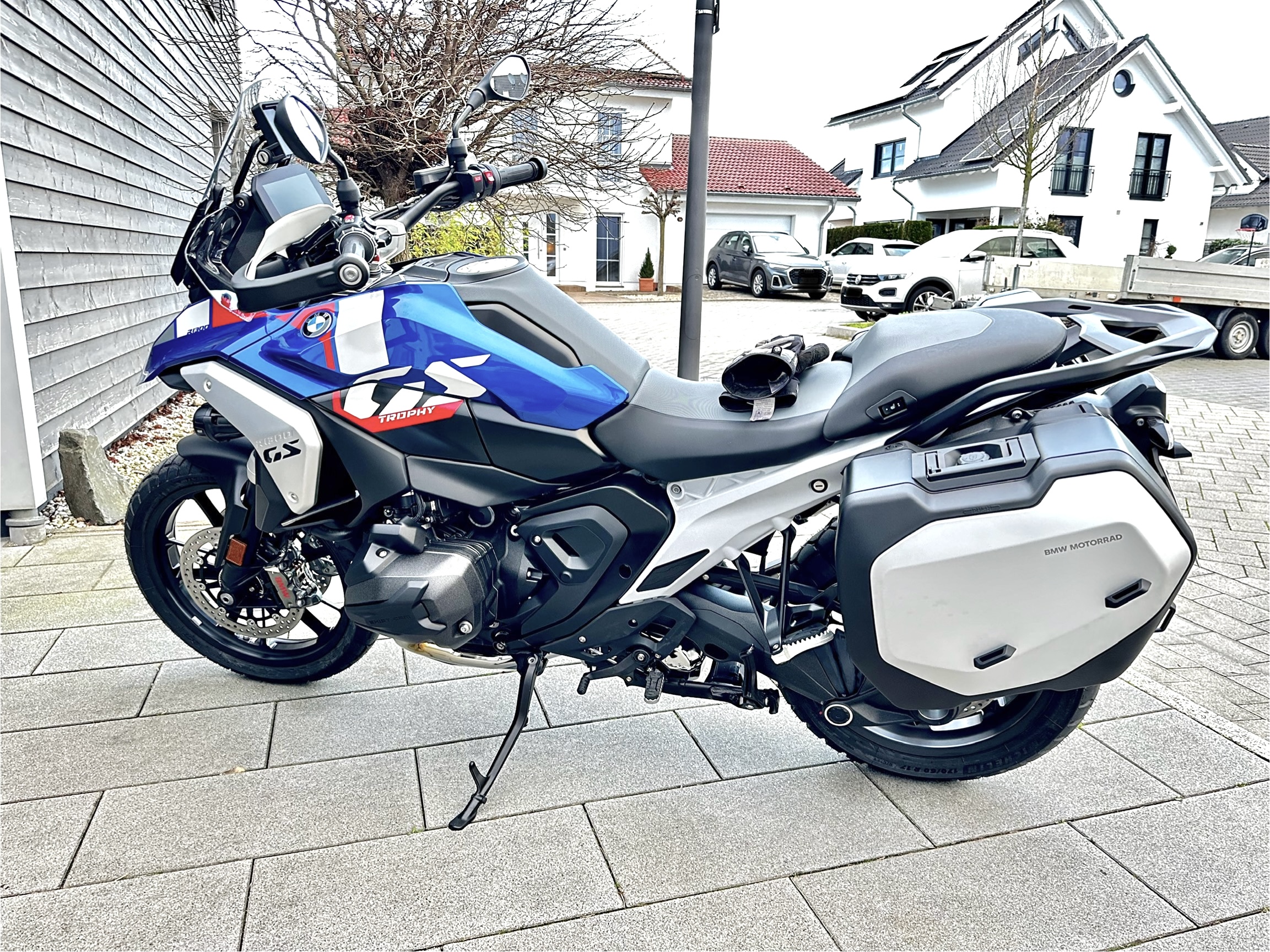 Allzeit gute Fahrt und viel Spaß mit dem neuem Gerät.Bei mir war es heute auch so weit. Gepäckplatte gab es ebenfalls, obwohl ich den TC Halter bestellt hatte. Kleines Versehen. Gefiel mir aber auch sehr. Also ebenfalls mitgenommen. Vergessen wurde dafür der TC Halter, muss noch nachgerüstet werden. Kein Problem, ich hab eh kein TC. Die Varios mit der Fernbedienung auf und zu machen ist schon echt abgefahren. An nem Motorrad! - sehr cooler Scheiß. Musste ich dauernd drauf rum drücken. Ich war die 13er noch nicht gefahren, und was soll ich sagen? Der Hype ist berechtigt. Fährt mega. Super Handling, vorbei ist es mit den behäbigen Vorderrad. Fährt und lenkt sich deutlich präziser als die 1250. Meine Befürchtung, die 13er könnte zu nervös sein, hat sich nicht bestätigt. Rangieren, Landstraße und Autobahn lassen für mich keine Wünsche offen. Hunderte km auf der Autobahn sollten sich genauso entspannt abspulen lassen wie bisher. Top! Das ACC ist ein Traum. In der Autobahnbaustelle einschalten und tiefenentspannt dahin rollen. Im ACC Dynamic Modus beschleunigt sie beim setzen des Blinkers - super! Der Tempomat lässt sich jetzt durch kurzes halten deutlich schneller um zehner Schritte nach oben oder unten anpassen. Wie hier schon geschrieben, schaltet die Kupplung nicht das ACC ab. Kurze Irritation bei mir. Das SSW funktioniert richtig prima. Cooler Scheiß. Hoffentlich werde ich jetzt nicht zu faul über die Schulter zu schauen. Wie hier schon viele geschrieben haben, ist der Quickshifter eine Offenbarung. Endlich schalten durch alle Gänge ohne, dass die Kiste ruckelt. Eine Wohltat.