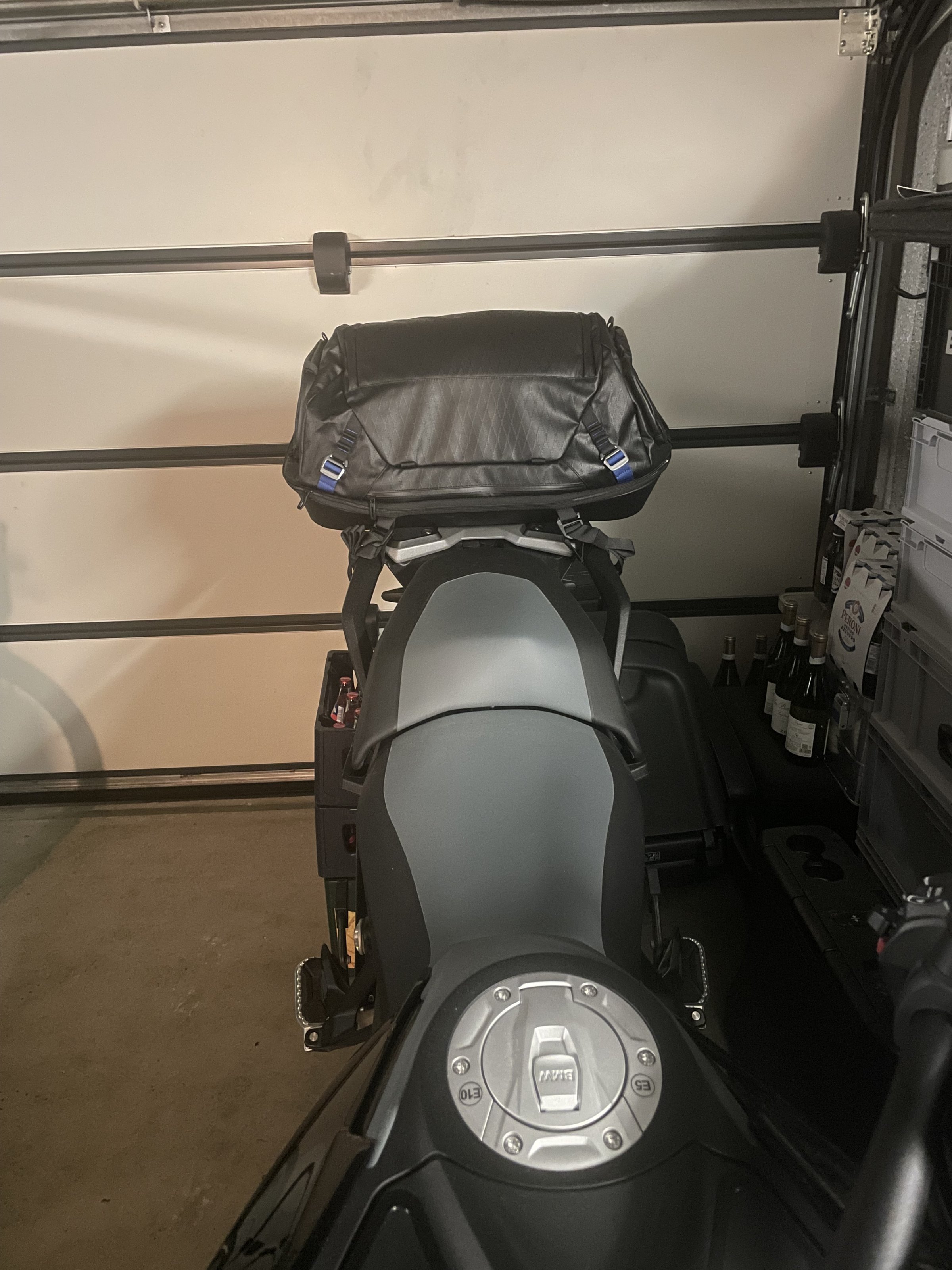 GIVI Träger aus vorherigen Jahrtausend an hochmodernen BMW Träger: