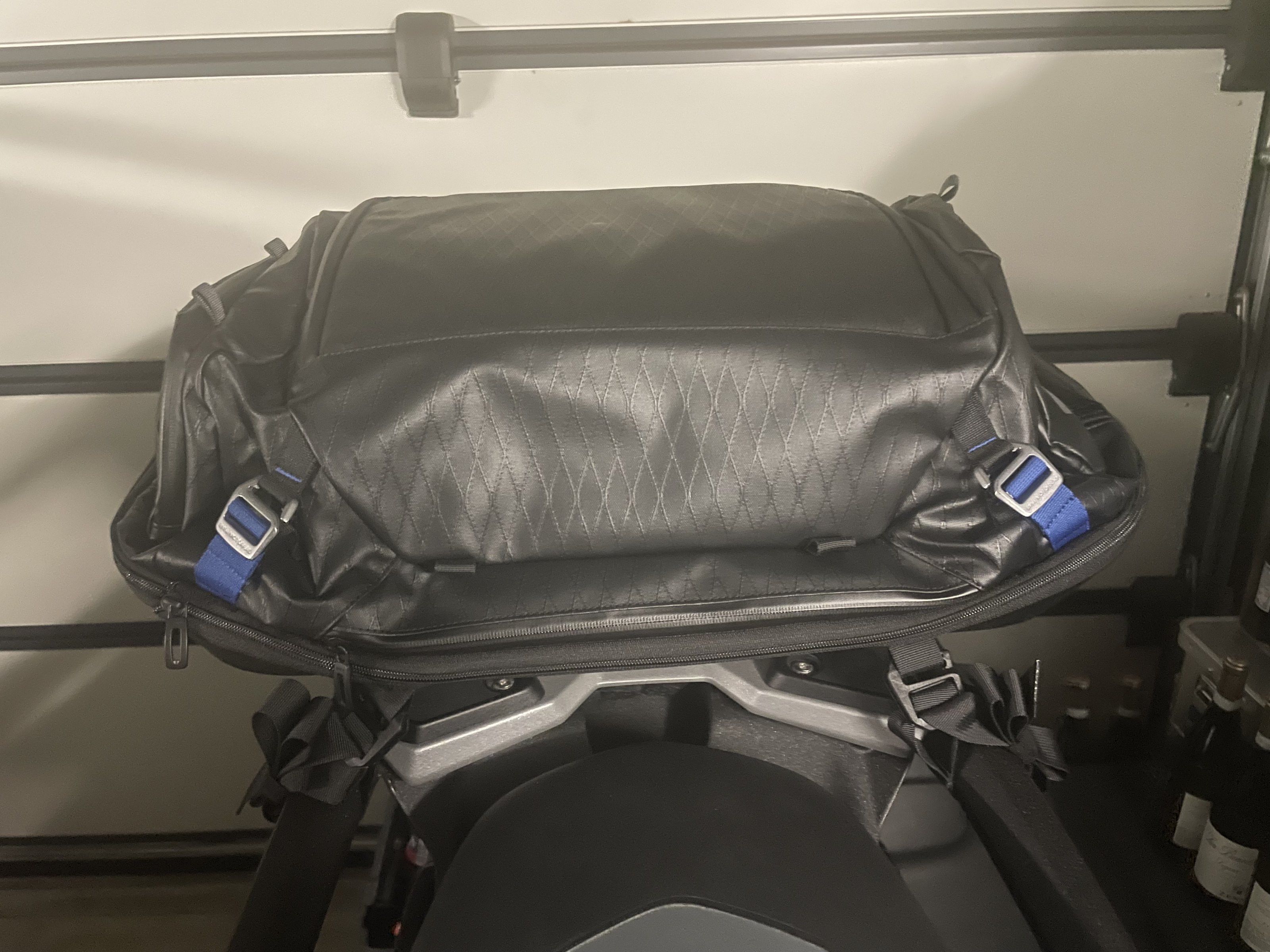 Von den vier Befestigungsschrauben gehen die zwei hinteren durch das Gewinde der silbernen Topcaseplatte, die vorderen wurde mit einer Mutter bestigt.