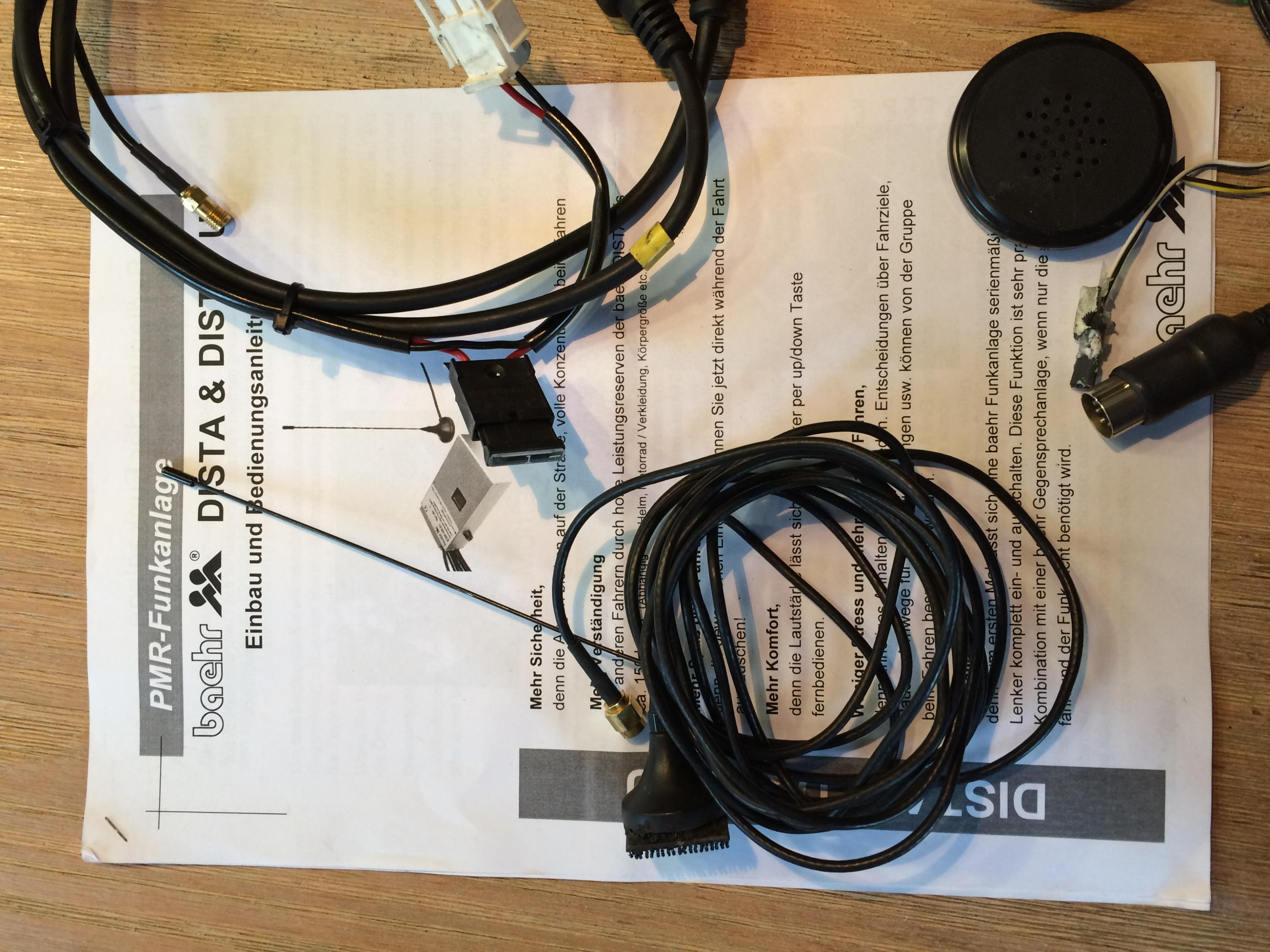 Zum Lieferumfang gehört das Steuermodul, der PTT-Taster, eine Antenne, ein Verlängerungskabel für den Helmanschluss, ein Headset inkl. Mikrofon sowie die Einbau- und Bedienungsanleitung - also alles, was auf den Bildern zu sehen ist.