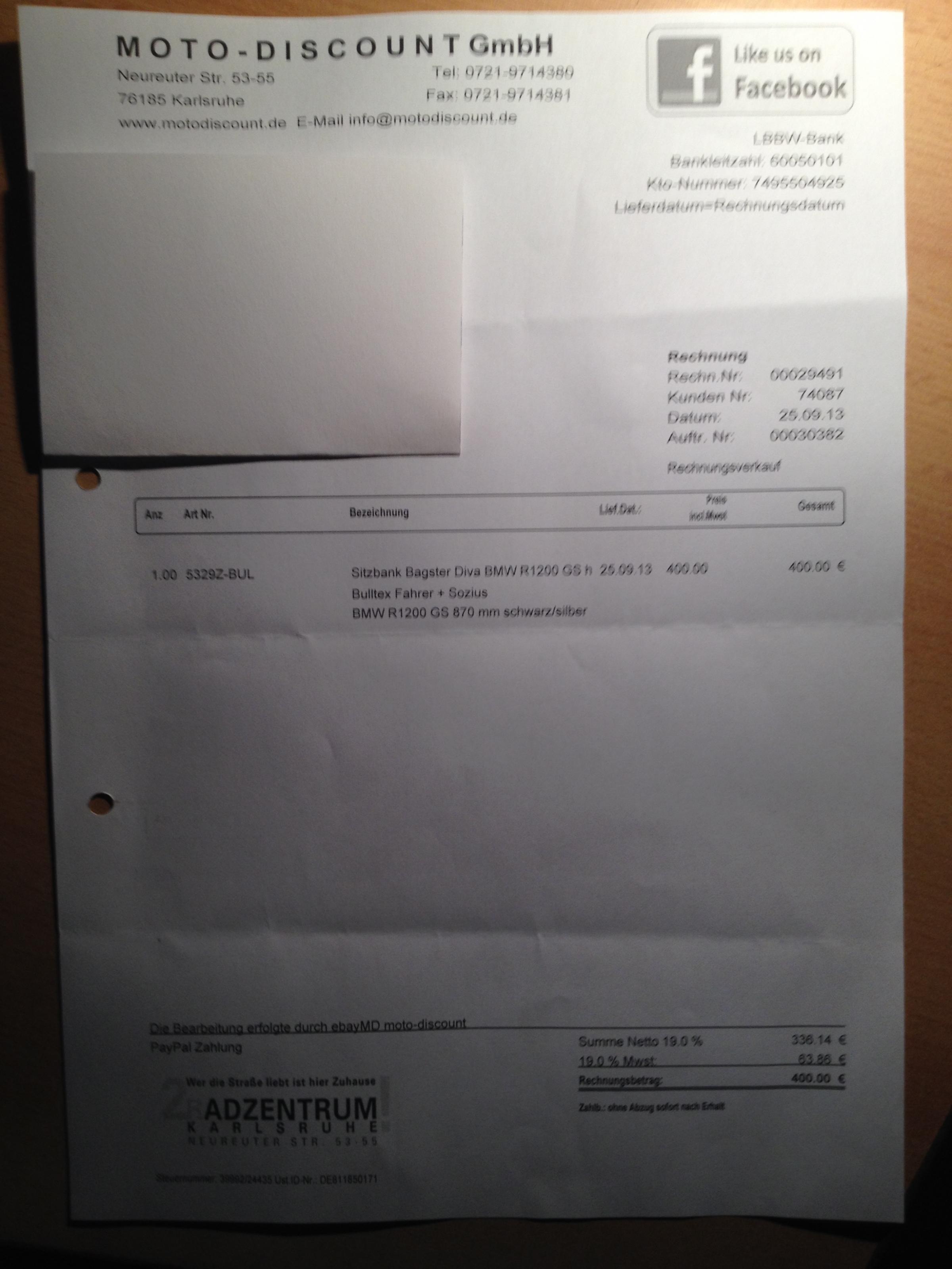 Verkaufe eine am 25.09.2013 gekaufte (Garantie noch bis 25.09.2015) Bagster Diva Sitzbank mit Bulltex Fahrer/ Sozius 870 mm Schwarz/ Silber für R 1200 GS