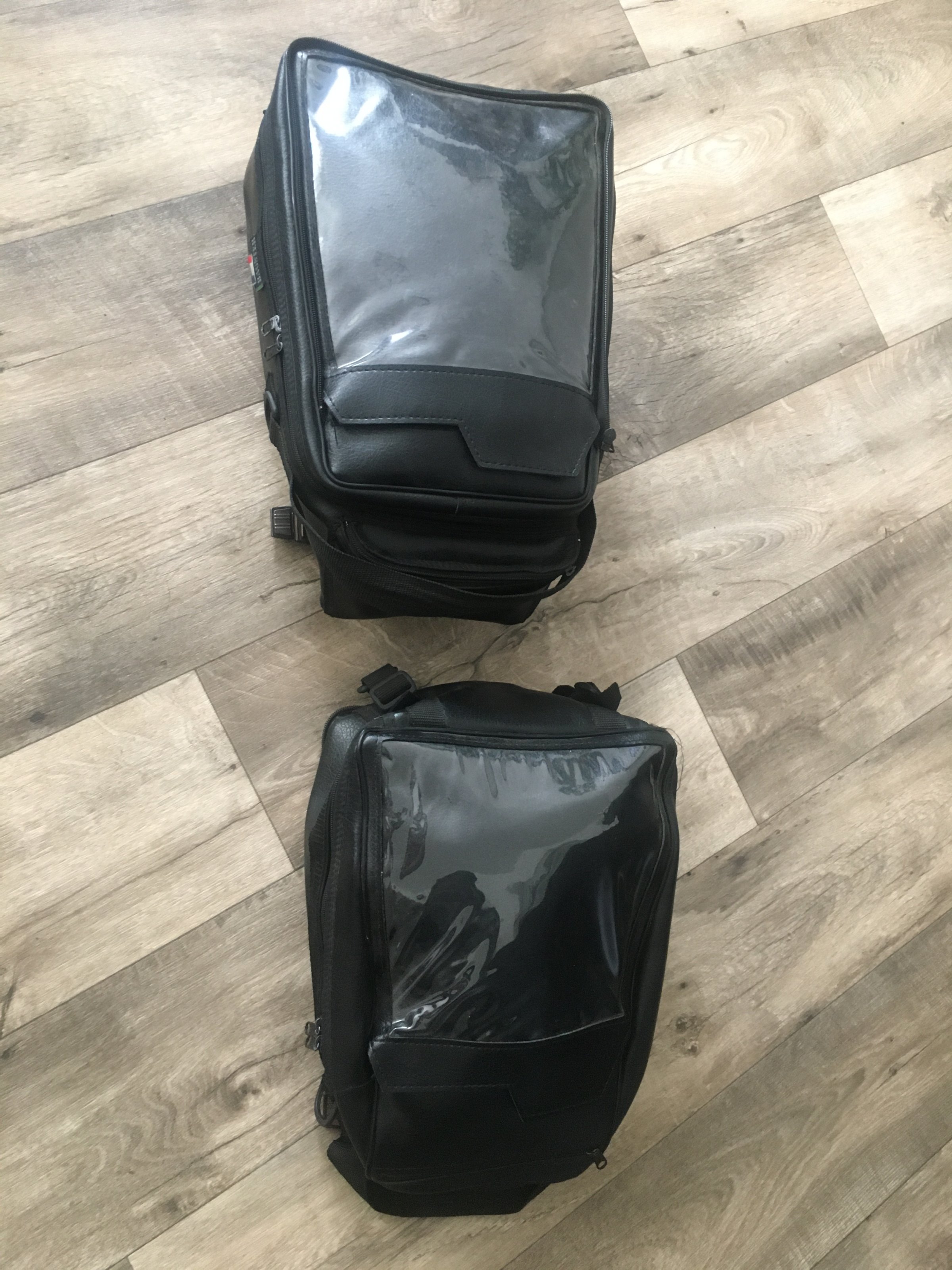 Der Tankrucksack ist 2 teilig. Jedes Teil ist einzeln nutzbar. Regenhaube ebenfalls vorhanden. Kartenfächer nicht blind, Klett i.O. Ä