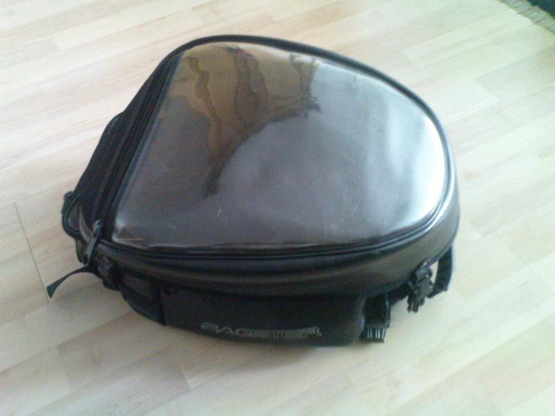 -BAGSTER Tankrucksack in schwarz. Kartenfach, 3 Außentaschen, integrierte Regenhaube, Volumen erweiterbar, Schulterriemen, innenliegendes Netzfach mit RV und Schnürzug im Deckel. Der Deckel kann umgedreht werden so das die Schnürung außen ist (da wo man normalerweise das Kartenfach hat). TRS ist etwa 3 Jahre alt.