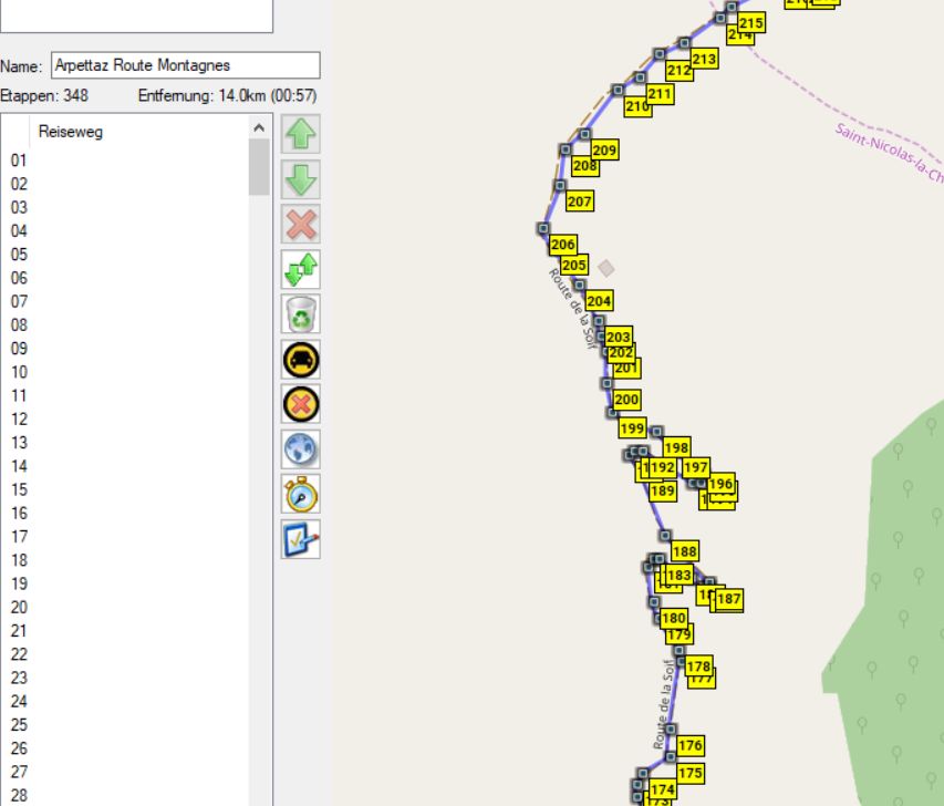 "Arpettaz Route Montagnes" geladen hatte, dort waren auf 14km 348 punkte gesetzt ..
