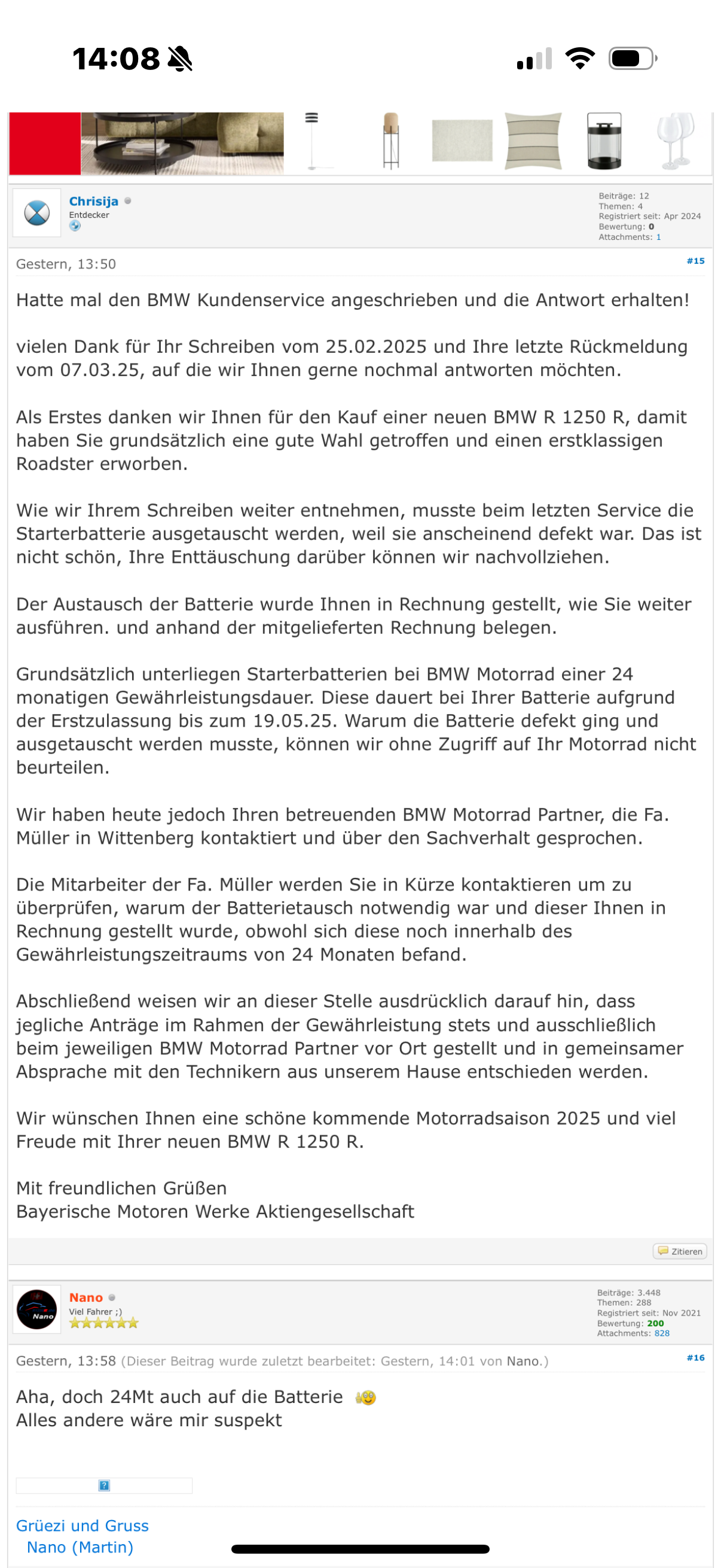 Bin dann heute morgen zum Freundlichen und dessen erste Aussage: BMW gewährt auf diese Batterie nur 6 Monate Garantie.