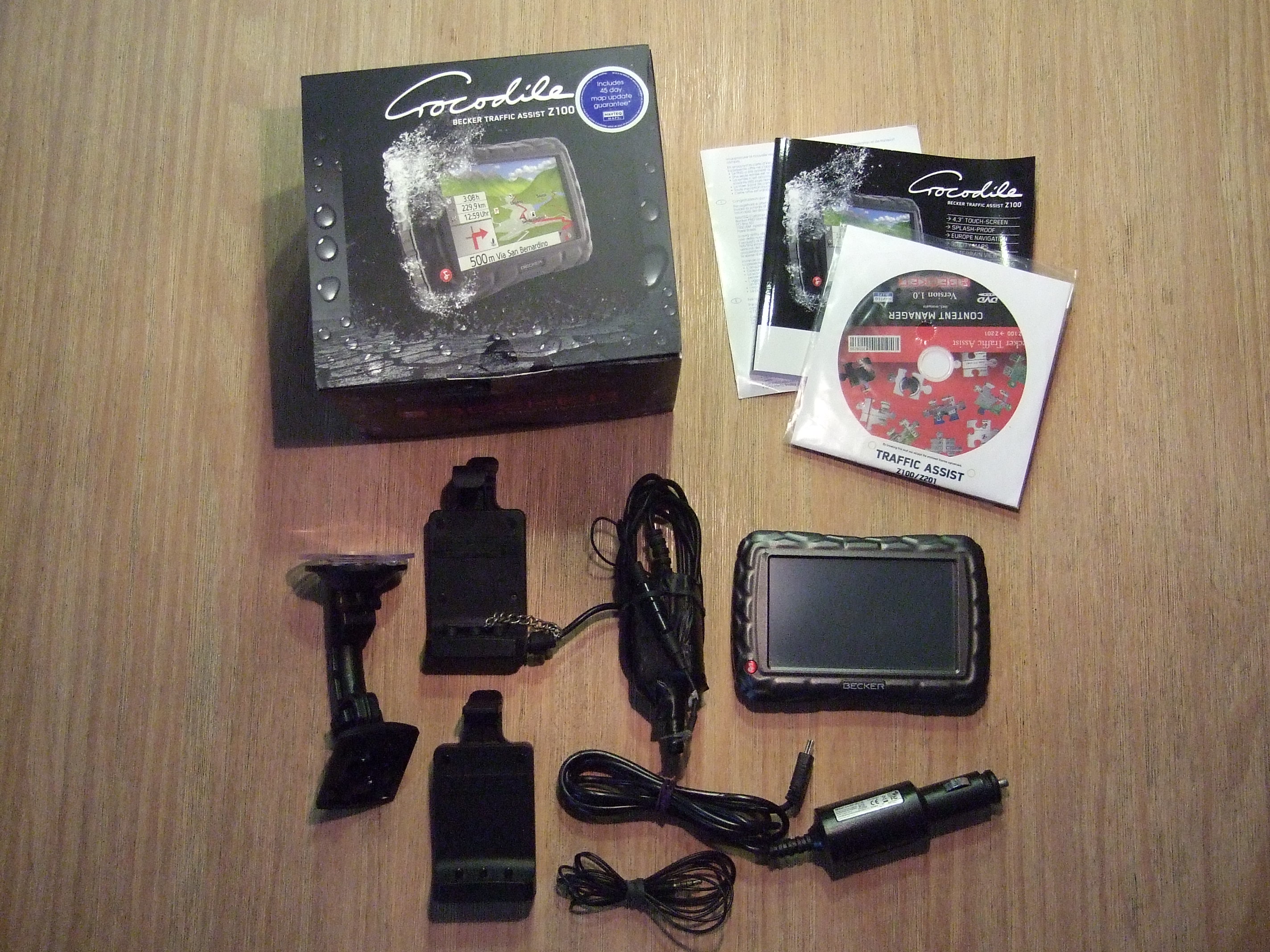 Zum Lieferumfang gehört das Croco, das Benutzerhandbuch inkl. Software-CD, eine Motorradhalterung inkl. Ladefunktion, eine Autohalterung, eine Verkehrsfunkantenne sowie ein passendes USB-Ladekabel mit Zigarettenanzünderanschluss. Das Ganze kommt in Originalverpackung.