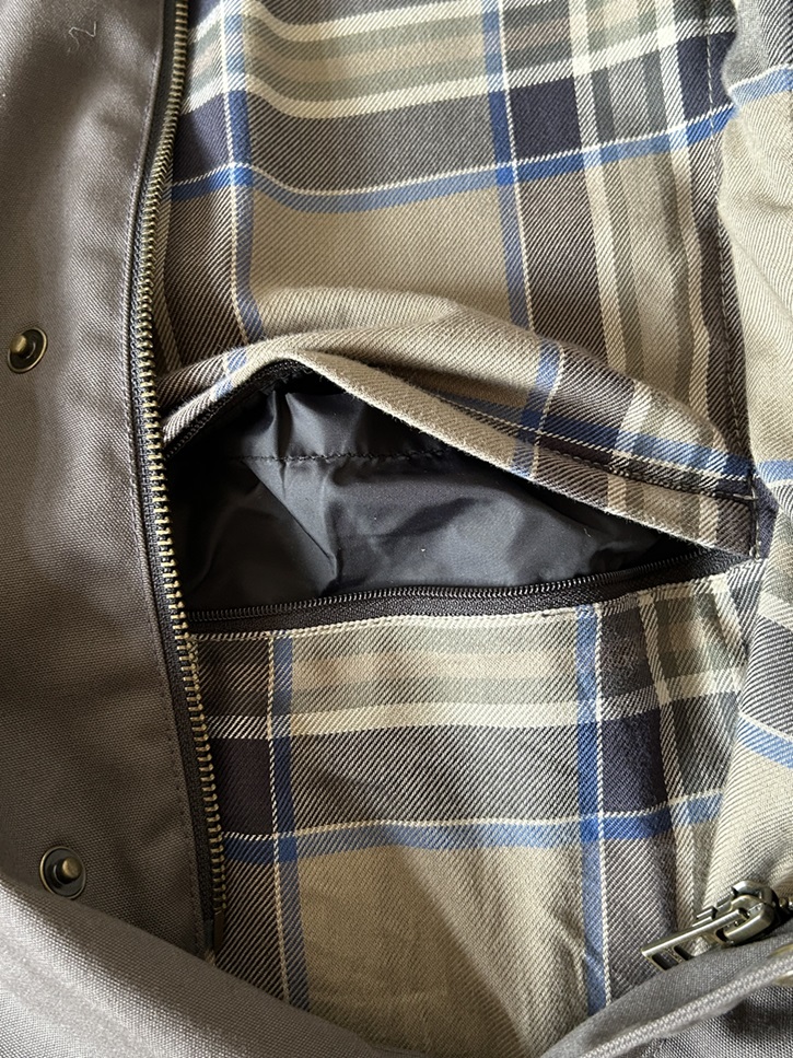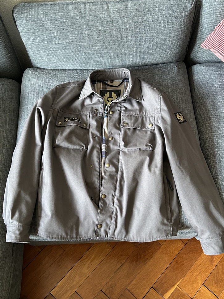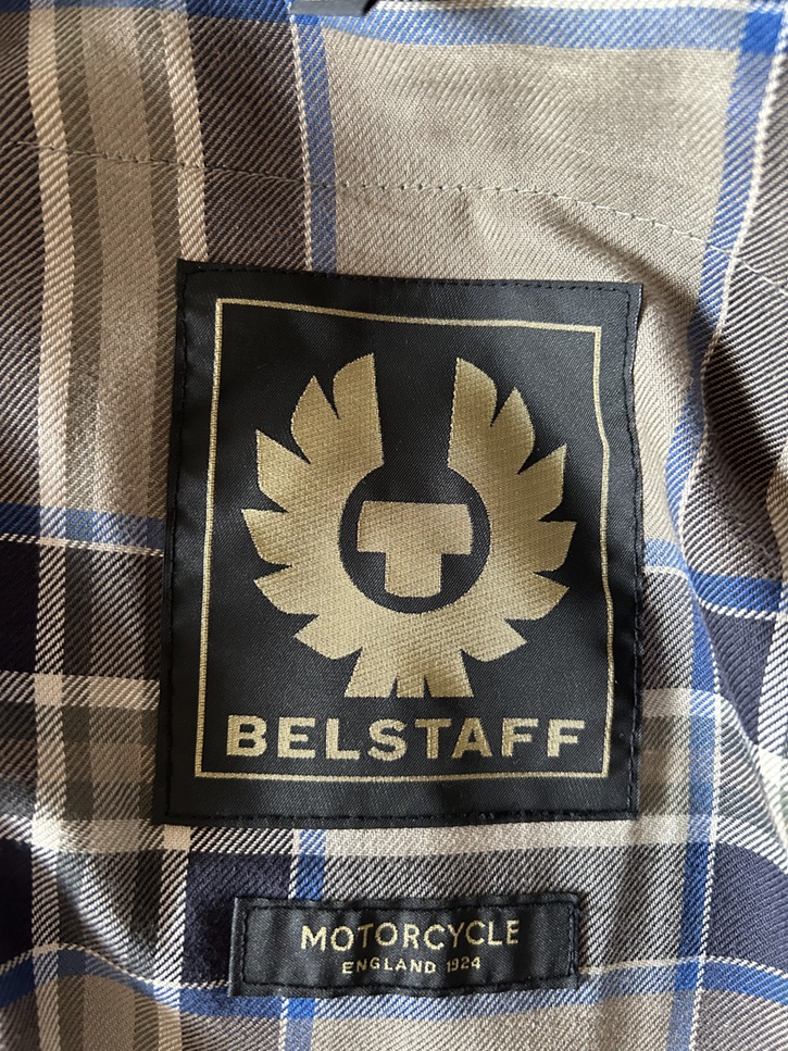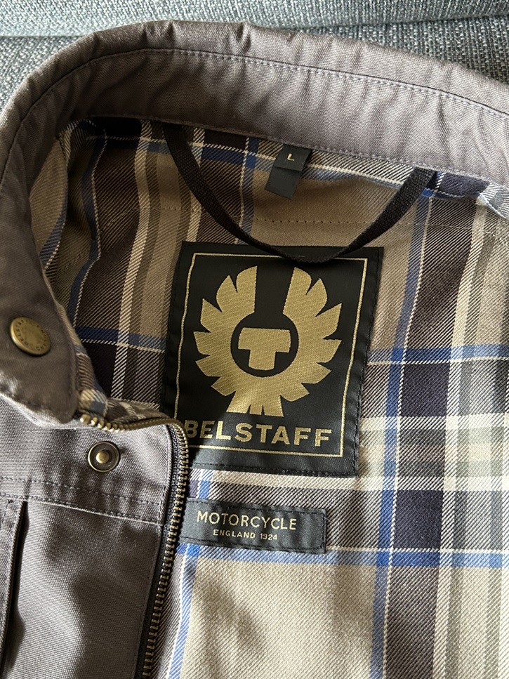 Sehr wenig getragene Belstaff Motorradjacke in einwandfreiem Zustand, wie Neu, in Größe L. Sie hat Schulter- und Ellenbogenprotektoren und man kann auch einen für den Rücken einfügen. Die Protektoren können auch komplett entnommen werden, sodass man die Jacke auch ohne Motorrad tragen kann. Sie hat 2 Brusttaschen mit Knöpfen und 2 Seitentaschen mit Reisverschluss.