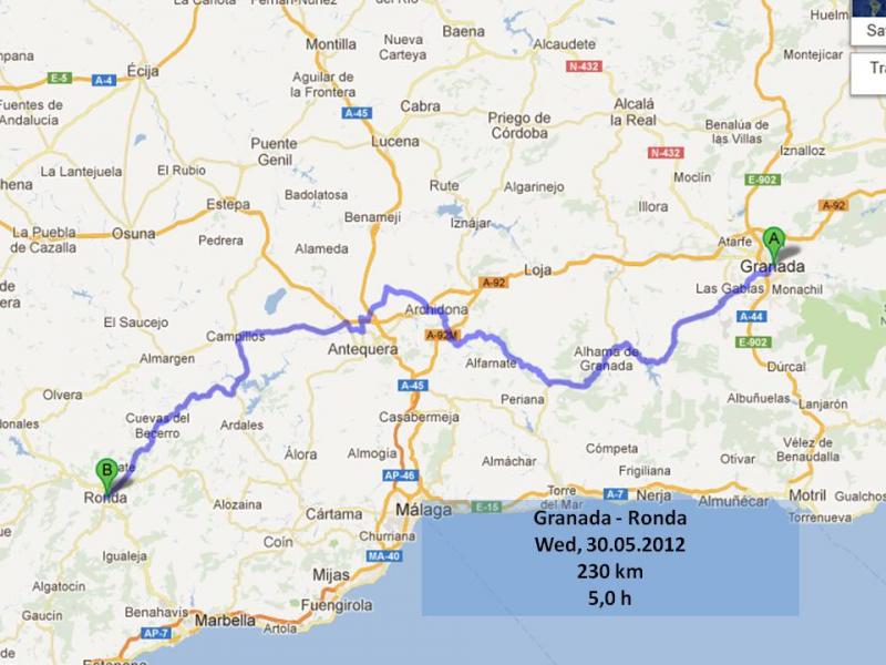 den Andalusien-Abschnitt haben wir wie folgt befahren:
