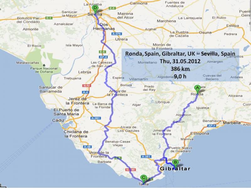 Fuer die Gegend um Granada, ebenso wie fuer die kleinen Strassen zwischen Granada und Ronda haetten wir uns gerne mehr Zeit genommen, Gibraltar war eigentlich nur ein "Pflicht-Abstecher", Sevilla ist super!