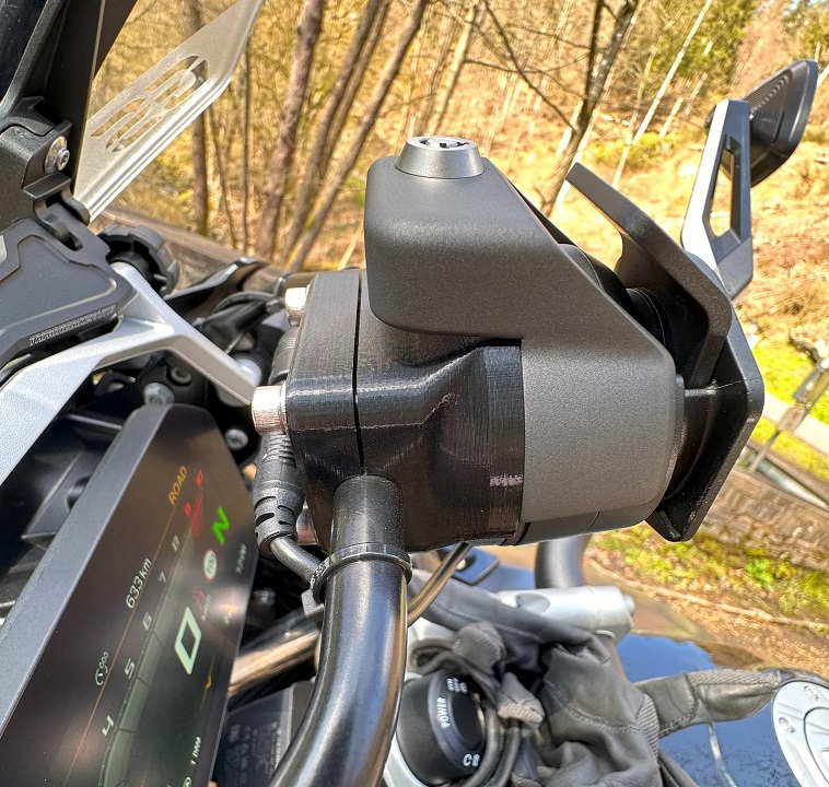 (getestet auf R1200GS LC; R1250GS; R1250GS Adventure) (sollte prinzipiell auf alle 12mm Navihalterbügel passen)